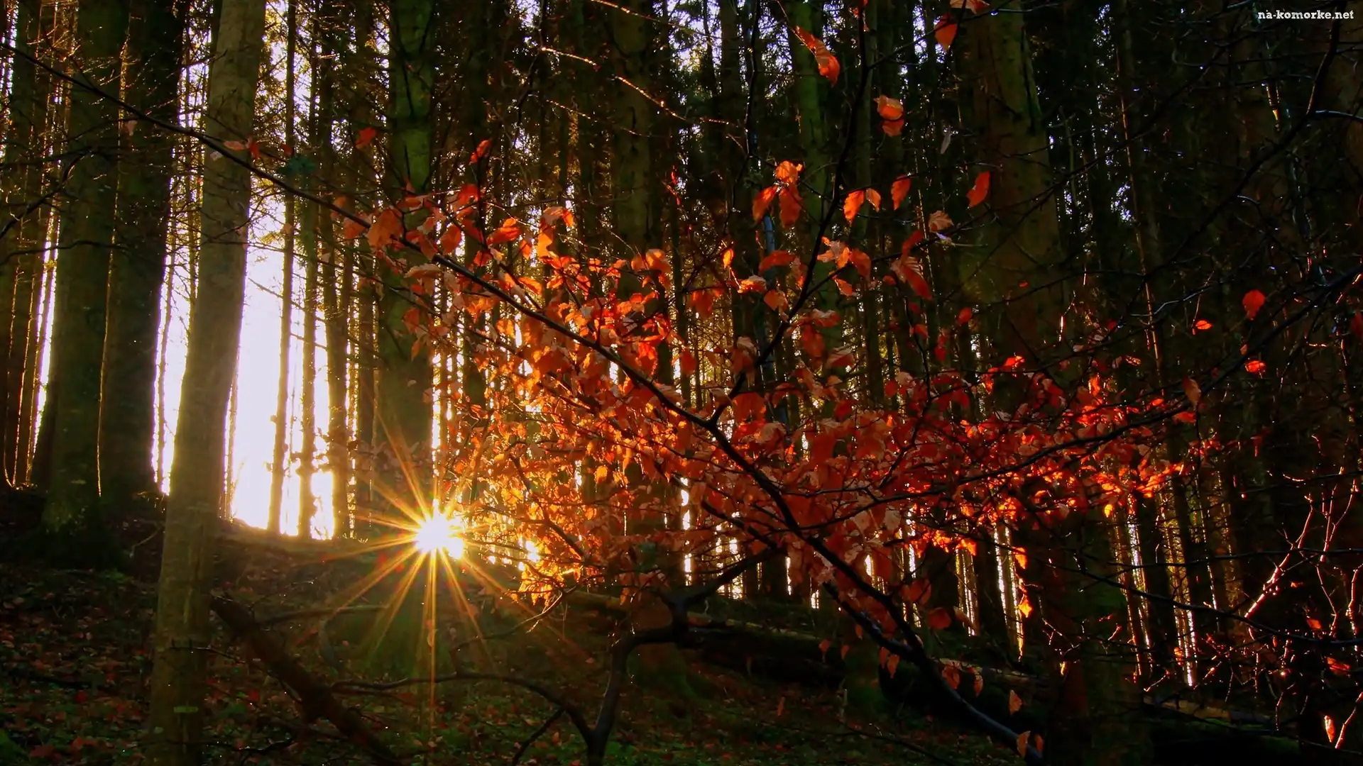 Jesień, Las, Promienie słońca na Komórkę