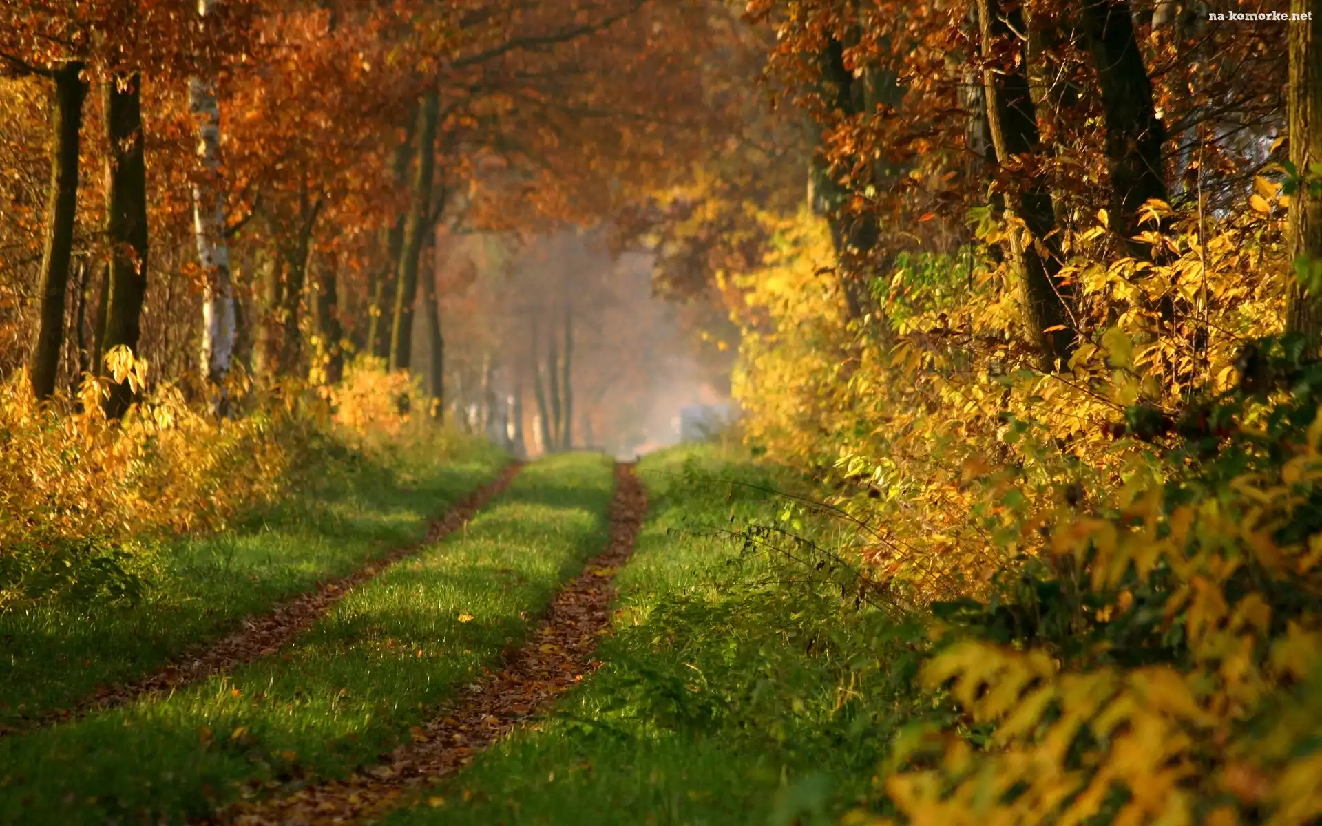 Jesień, Las, Droga, Przebijające, Światło na Komórkę