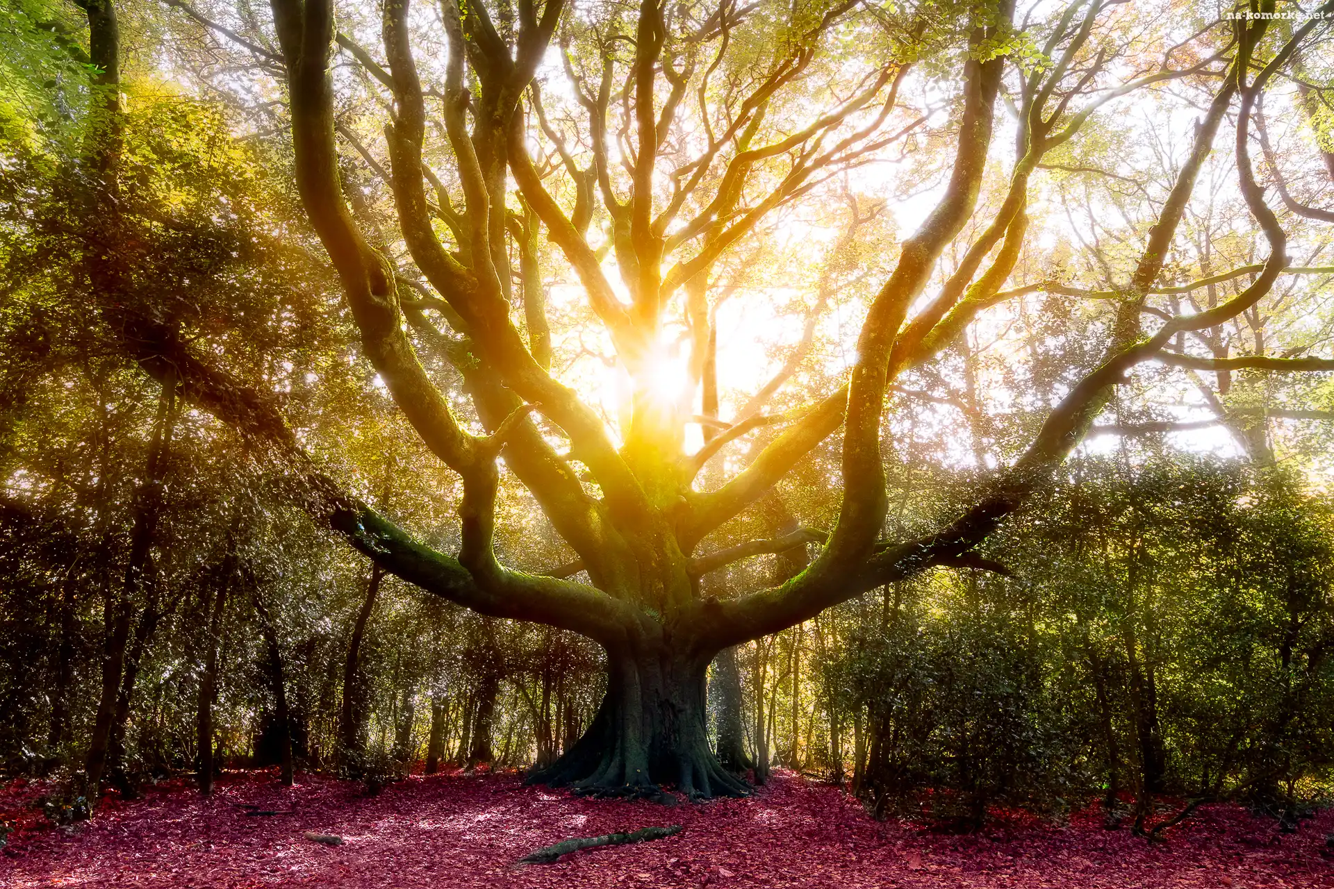 Jesień, Drzewa, Przebijające, Światło na Komórkę