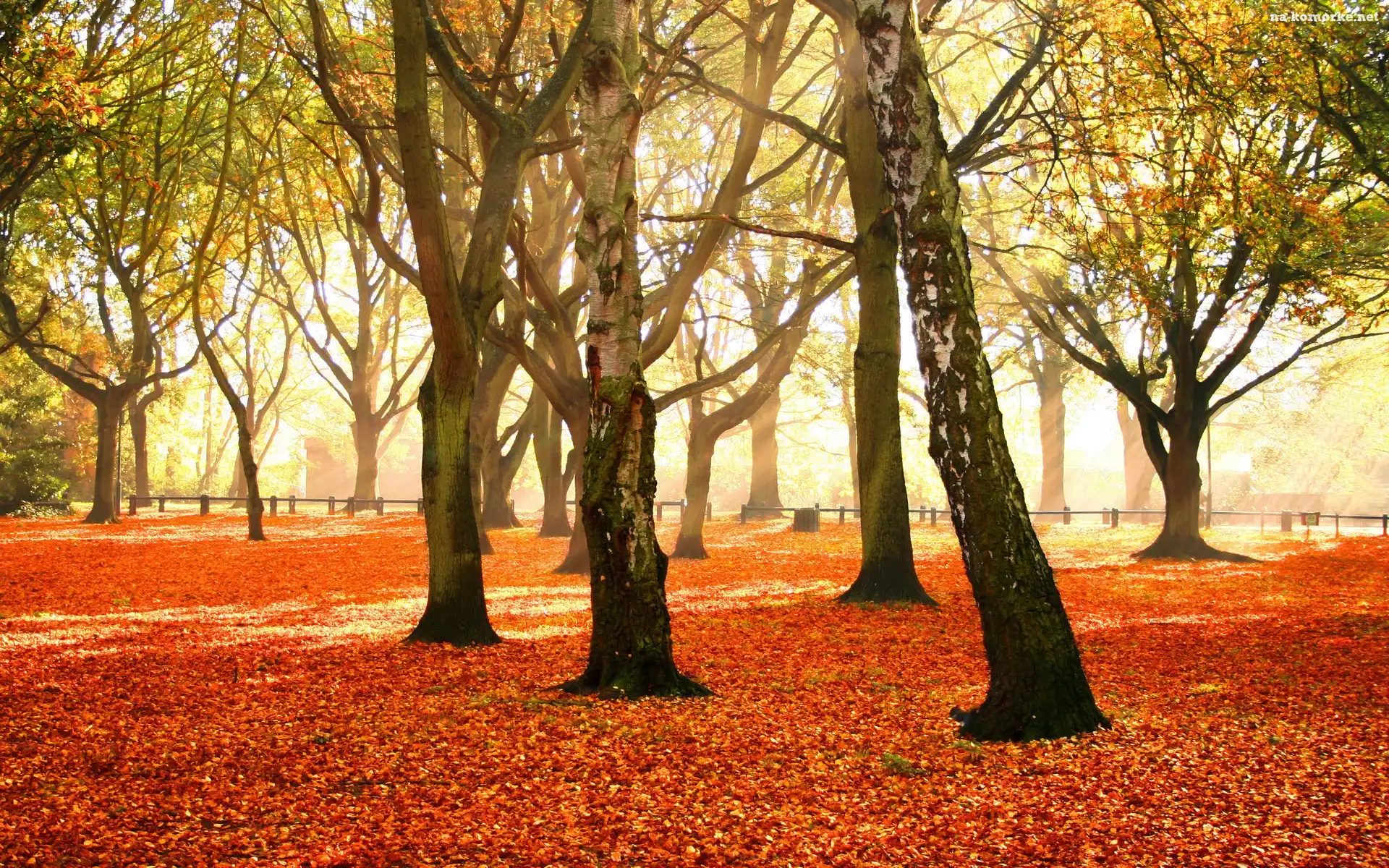 Jesień, Park, Liście, Przebijające, Światło na Komórkę