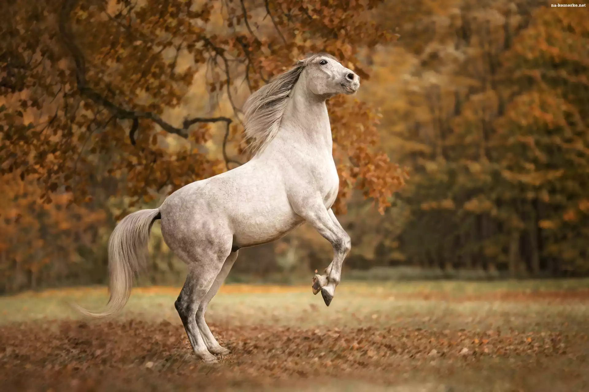 Koń, Jesień, Ruch, Siwy, Podskok na Komórkę