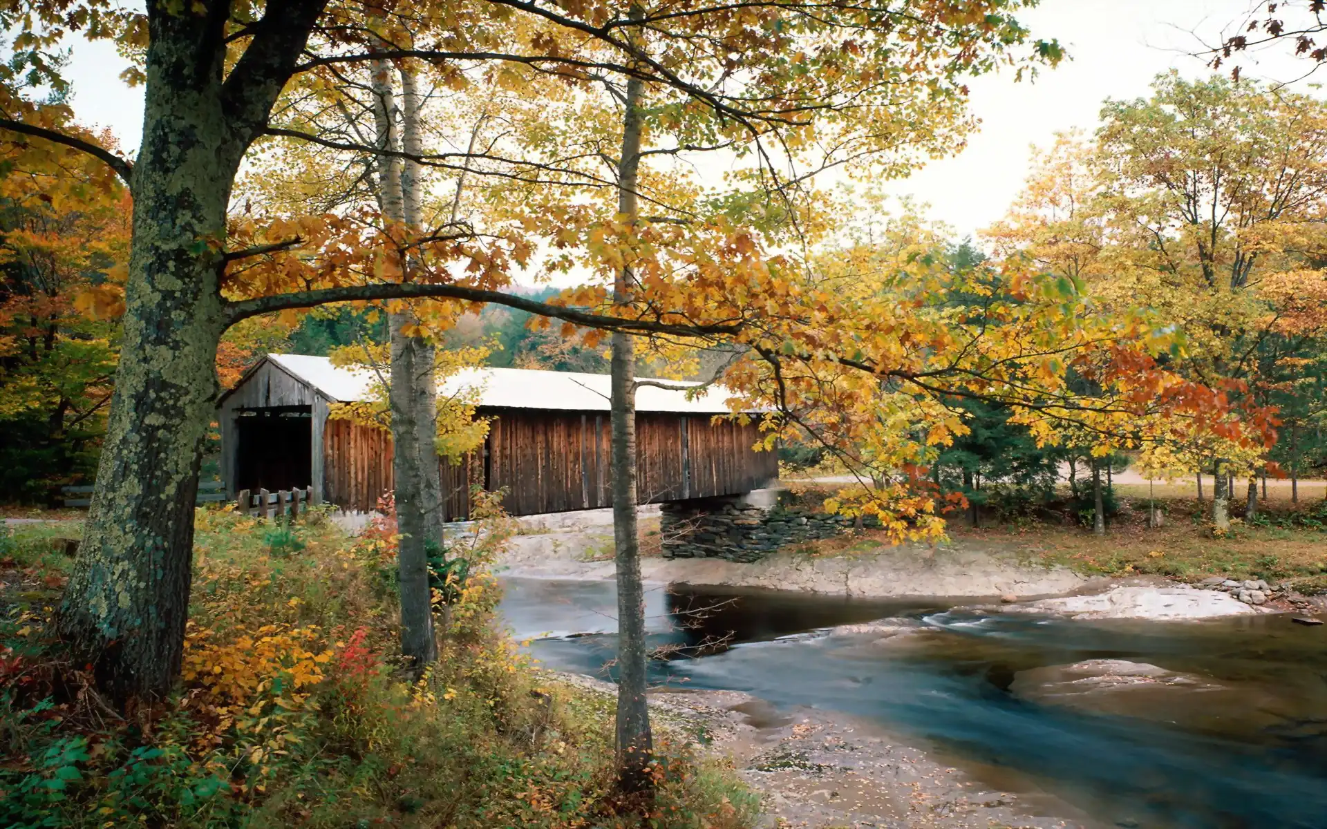 Jesień, Wodny, Młyn, Anglia, Rzeka, Vermont na Komórkę