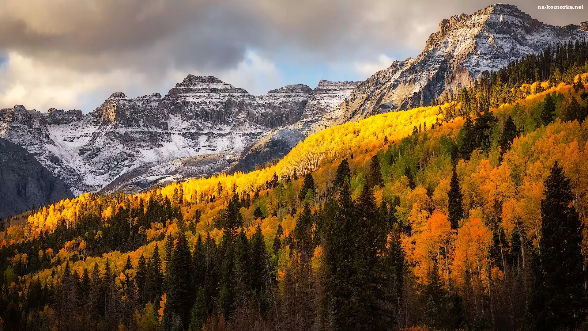 Góry, Kolorado, Stany Zjednoczone, San Juan Mountains, Lasy, Drzewa, Jesień na Komórkę