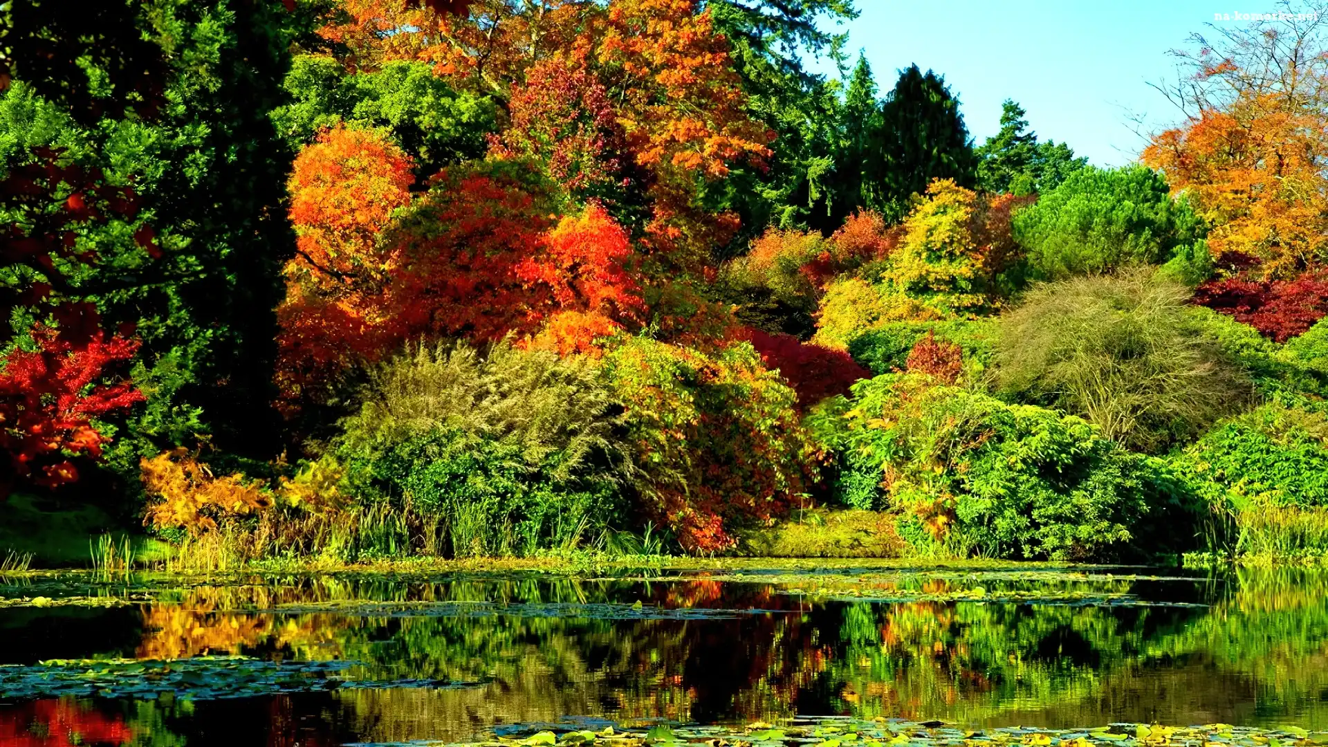 Jesień, Drzew, Staw, Odbicie na Komórkę