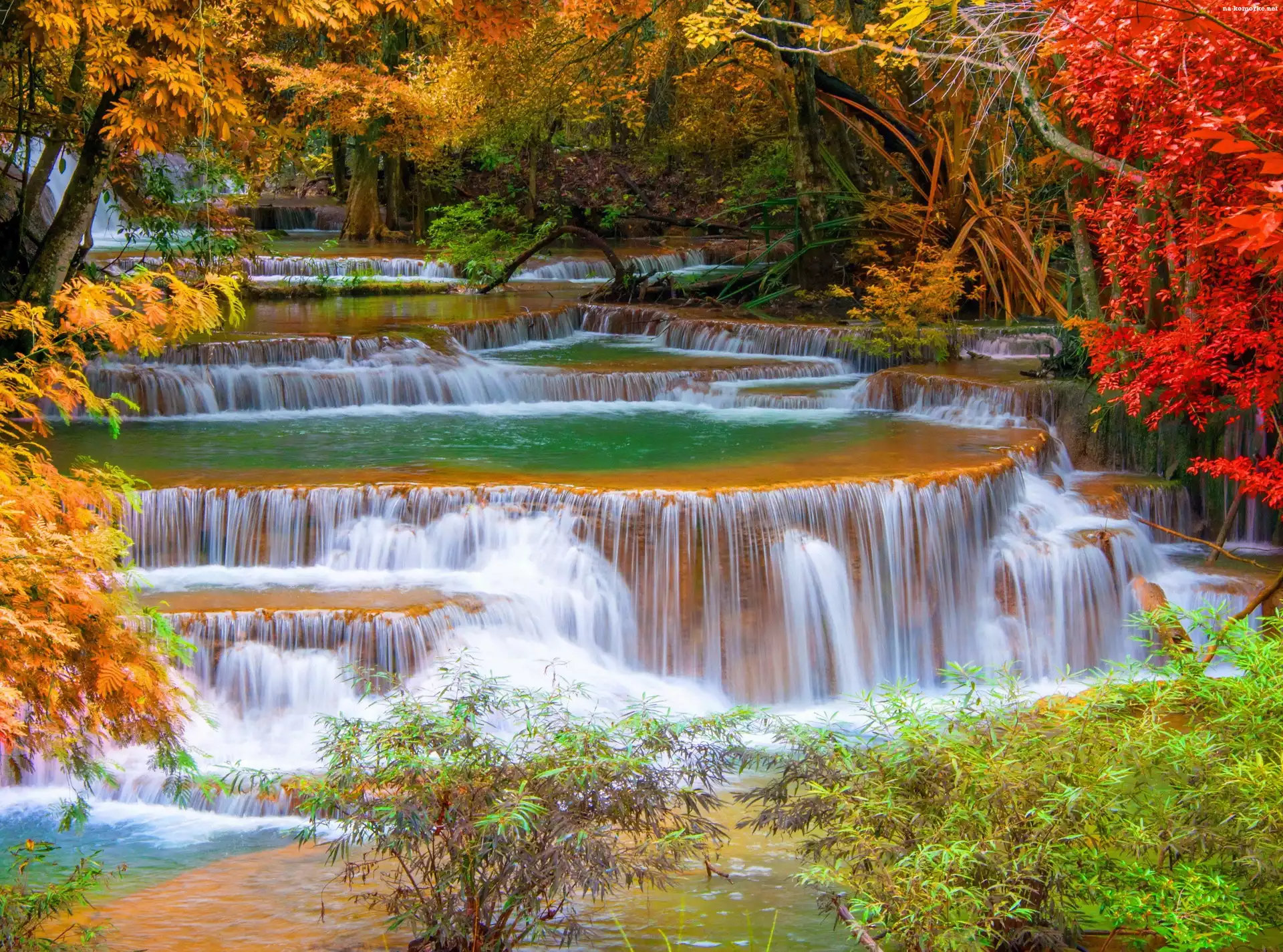 Jesień, Las , Wodospad, Kaskada na Komórkę