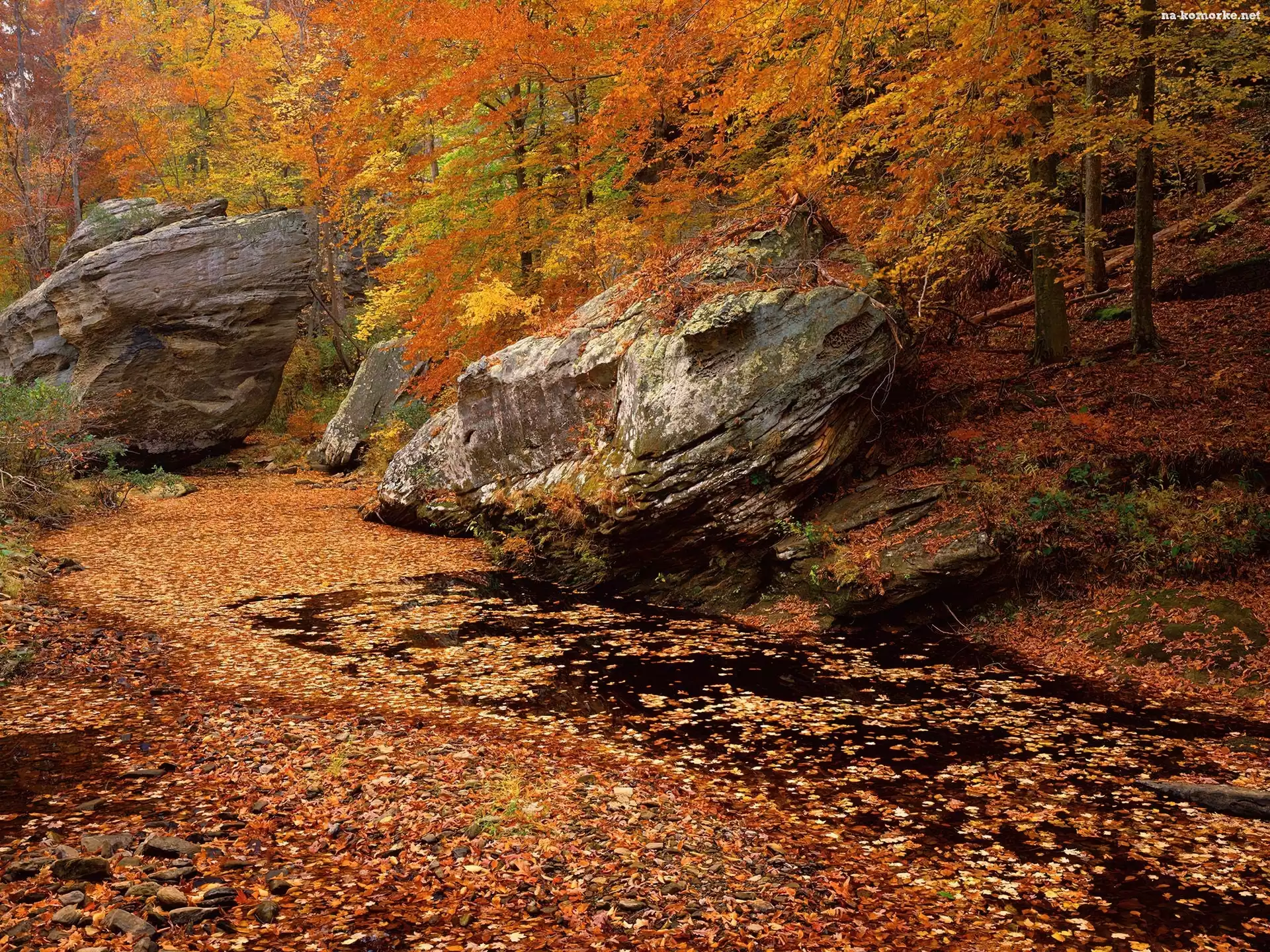 Las, Strumyk, Kolory, Drzewa, Jesieni na Komórkę