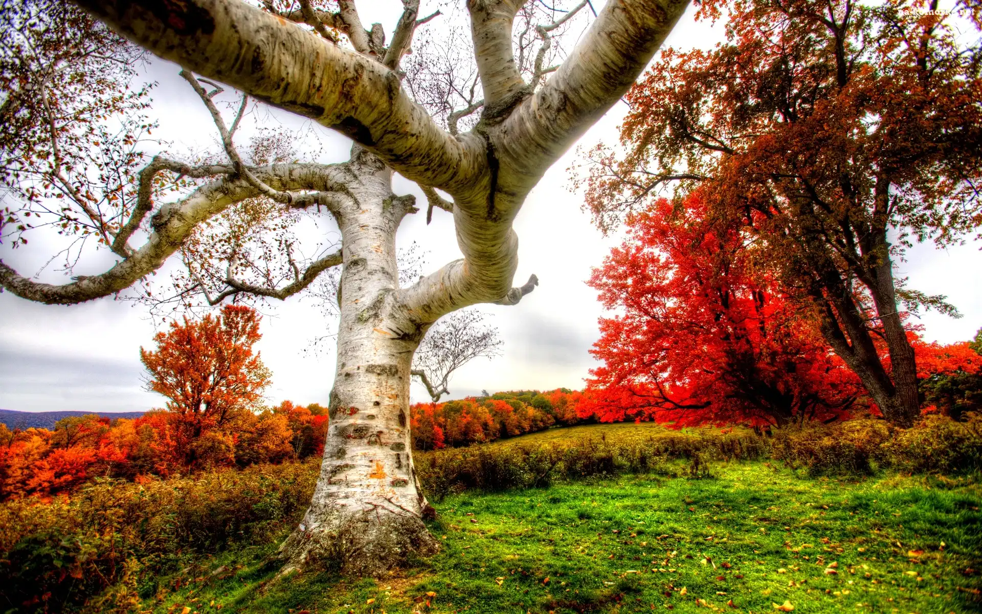 Jesienne, Brzoza, Drzewa, Biała na Komórkę
