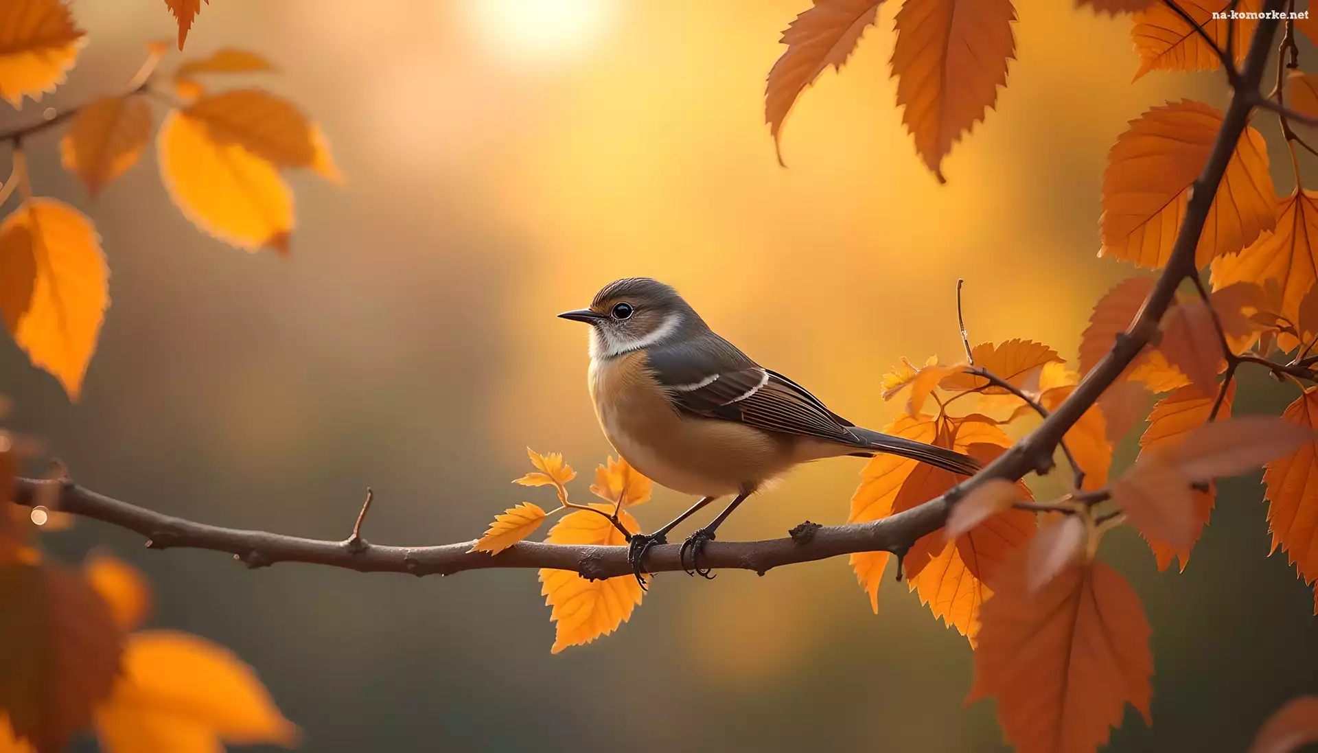 Brązowy, Jesienne, Liście, Ptak, Grafika na Komórkę