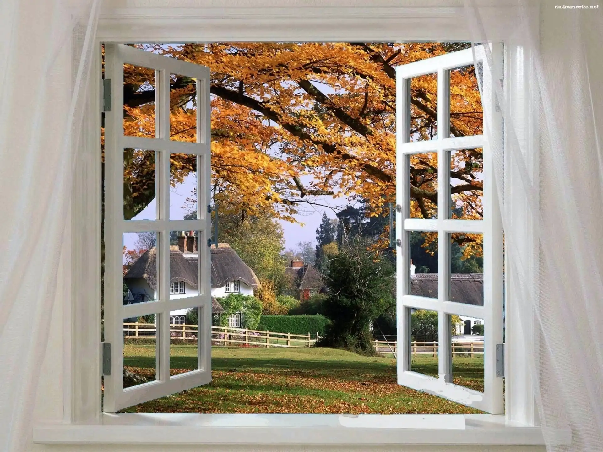 Jesienny, Okno, Widok, Przez na Komórkę