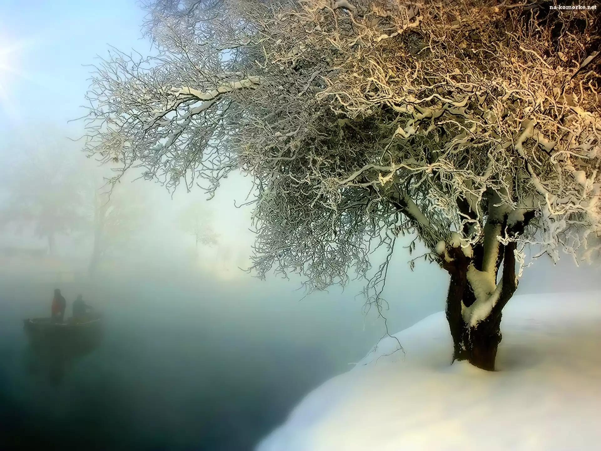 Jeziora, Zima, Mgła, Drzewo na Komórkę