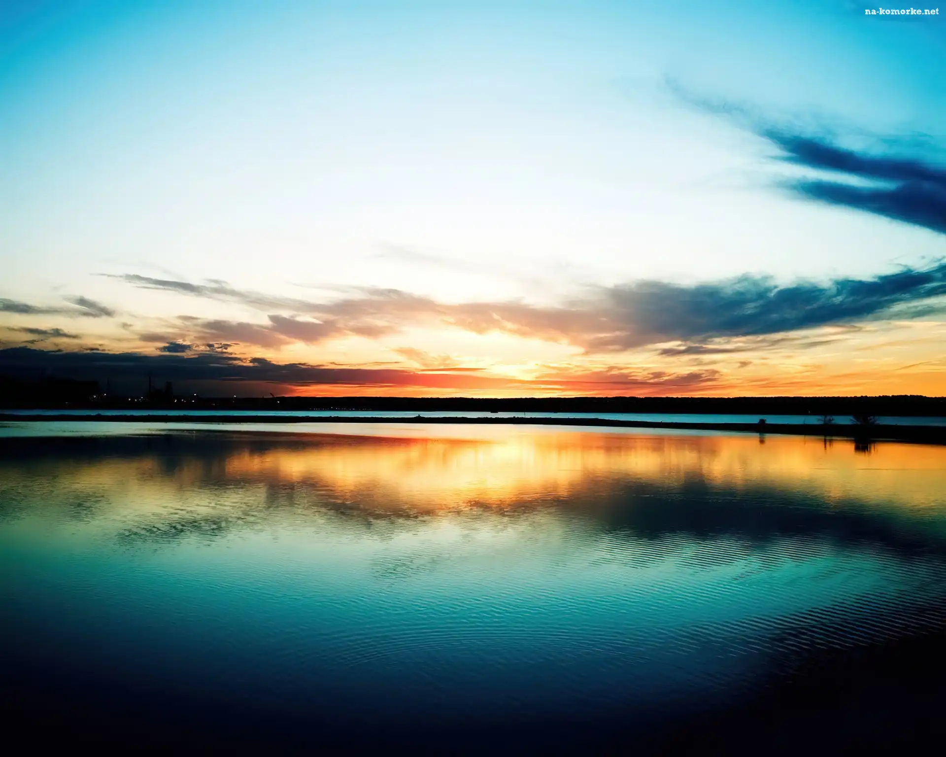 Jeziora, Zachód, Słońca, Odbicie, Tafla na Komórkę