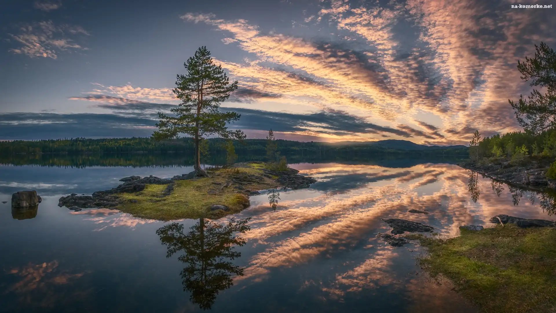 Jezioro, Ringrike, Norwegia, Odbicie, Chmury, Drzewa na Komórkę