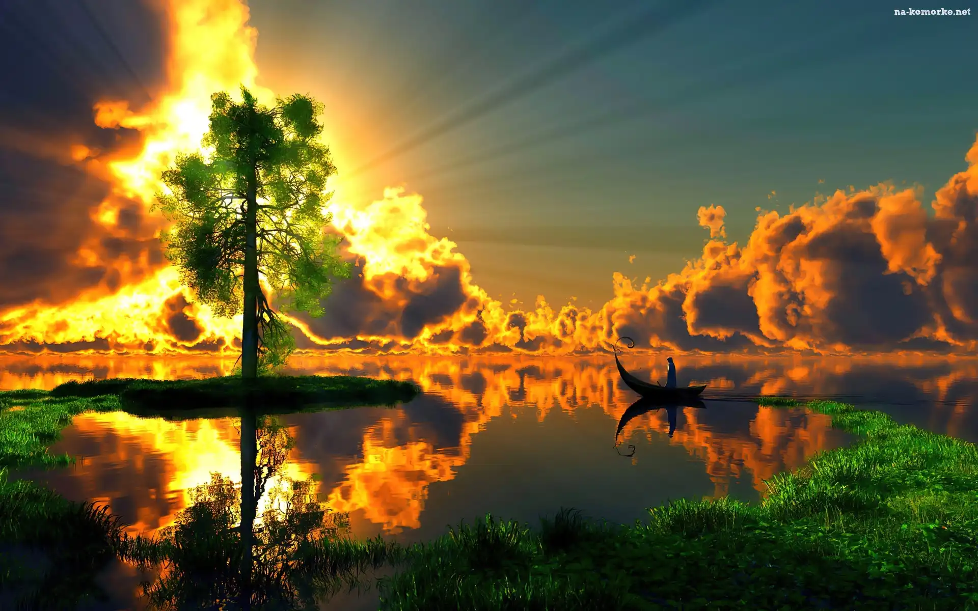 Jezioro, Słońca, Chmury, Promienie na Komórkę