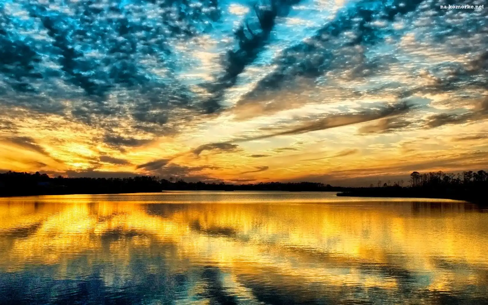 Jezioro, Zachód, Słońca, Chmury, Niebo na Komórkę