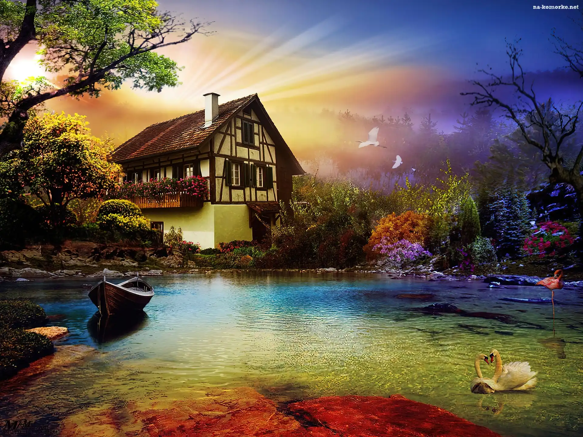 Domek, Jezioro, Łódka na Komórkę