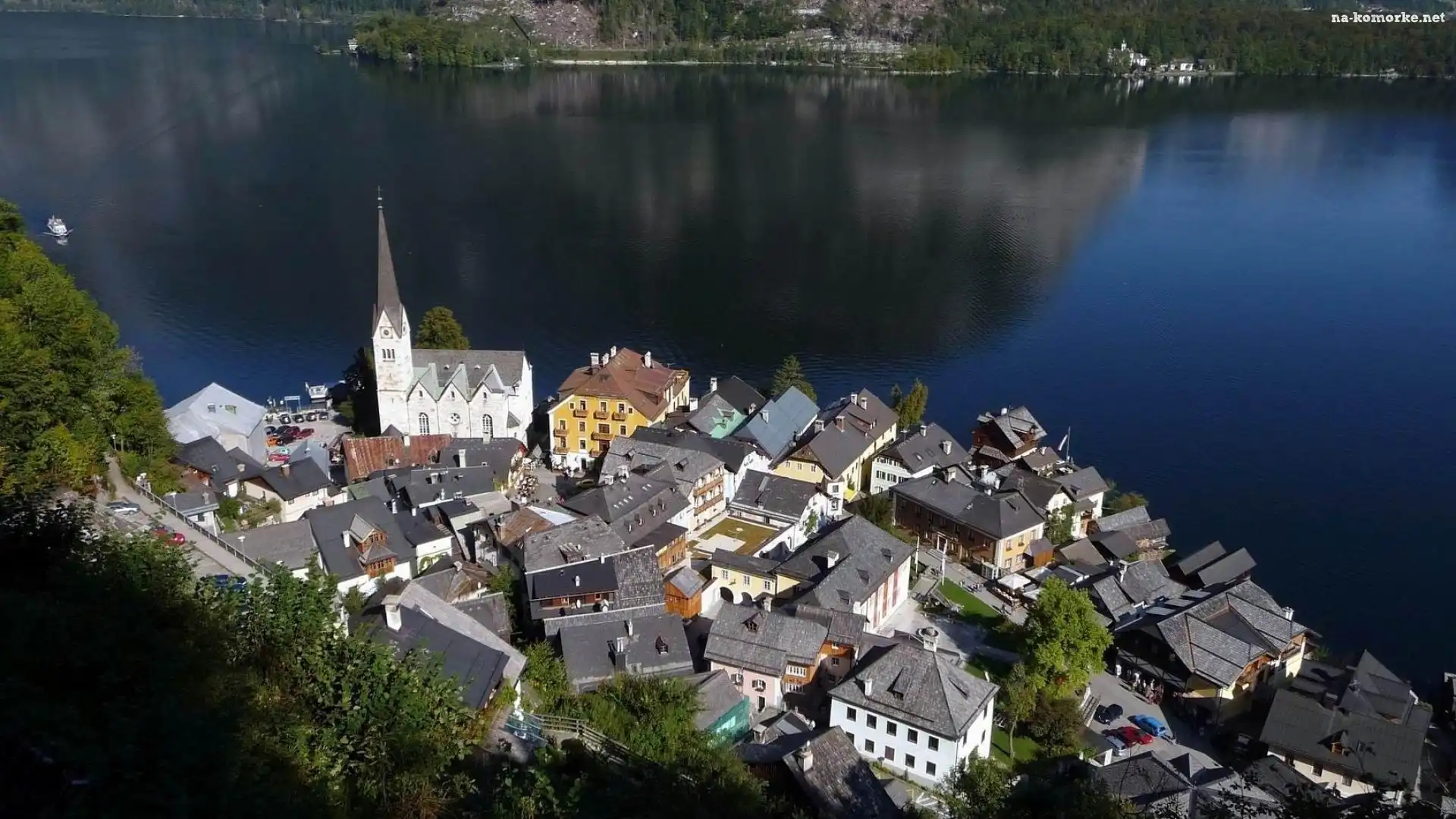 Jezioro, Austria, Domy, Hallstatt na Komórkę