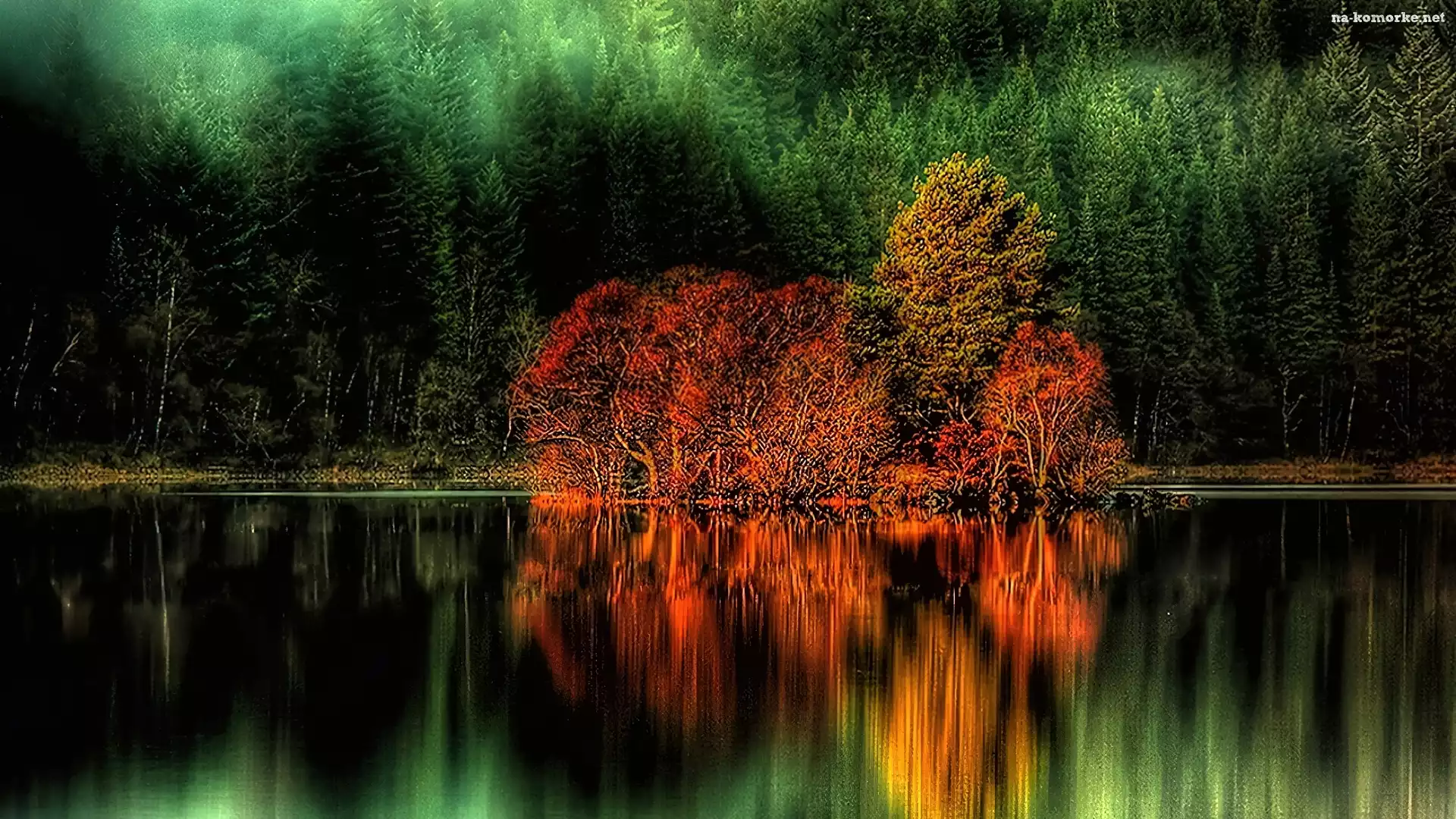 Drzewa, Jezioro, Jesień na Komórkę