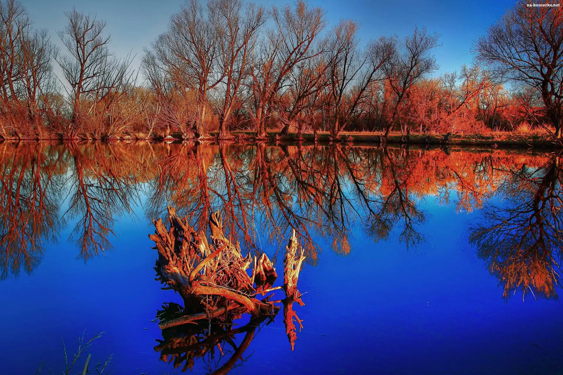 Drzewa, Odbicie, Jezioro na Komórkę