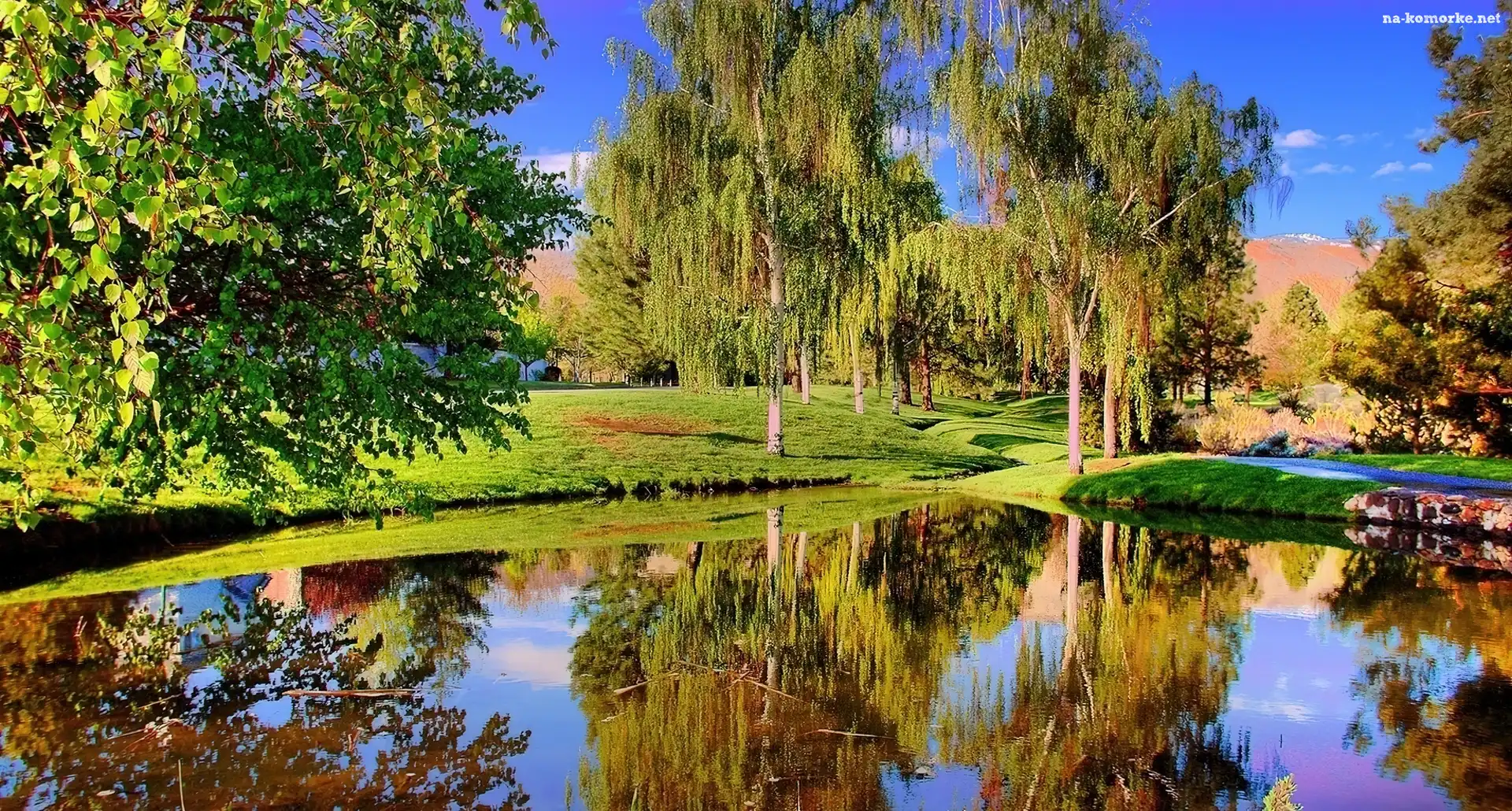 Drzewa, Jezioro, Odbicie na Komórkę