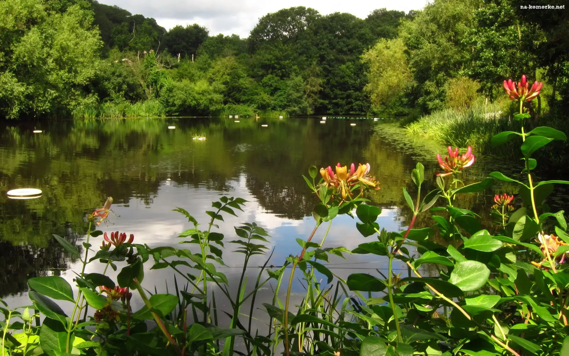 Jezioro, Trawy, Drzewa, Kwiaty na Komórkę