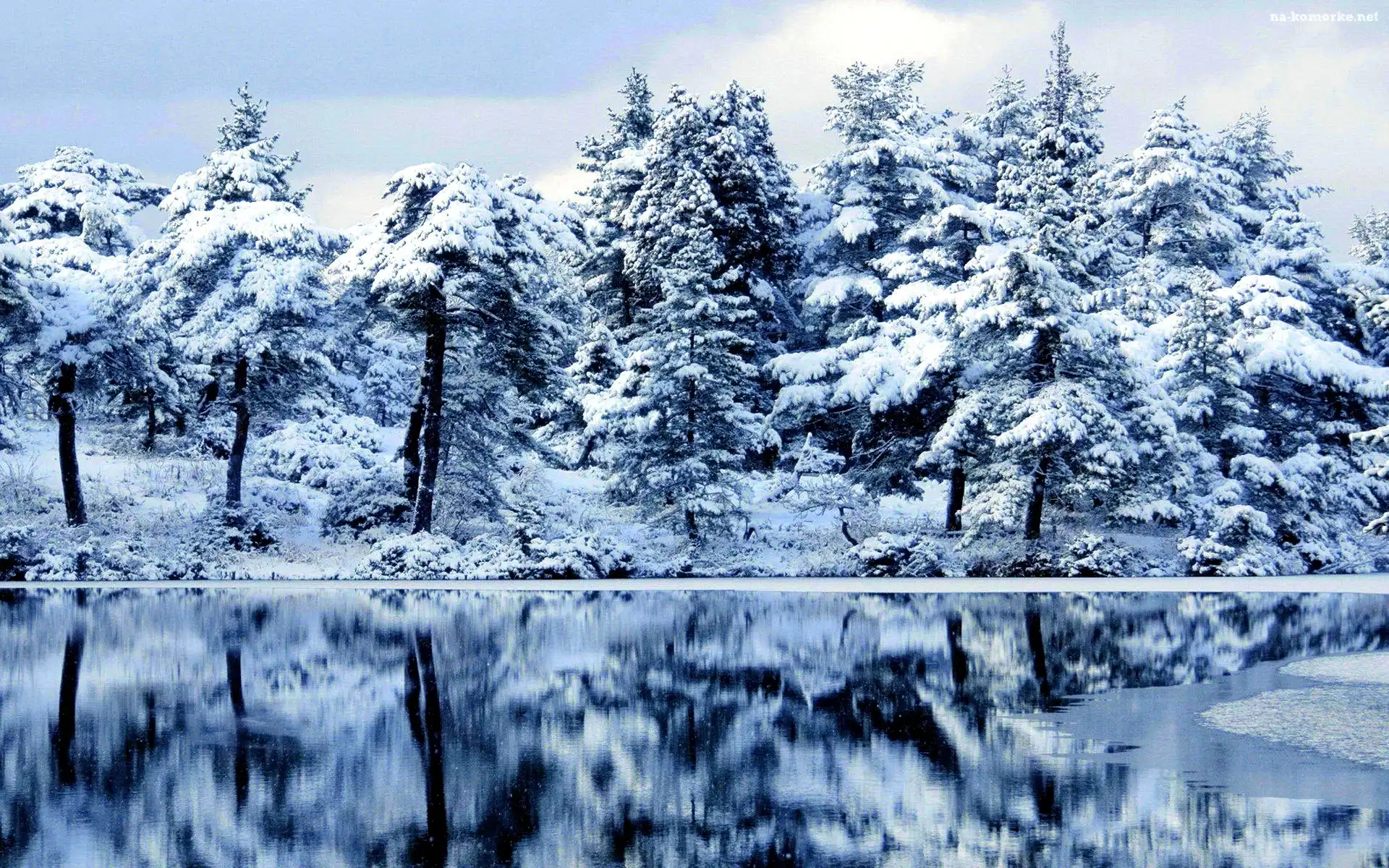 Drzewa, Zima, Jezioro na Komórkę