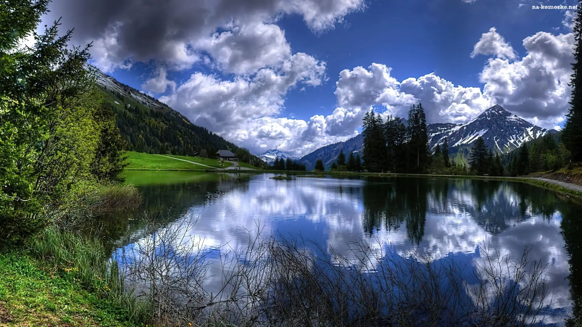 Jezioro, Lasy, Góry, Chmury na Komórkę