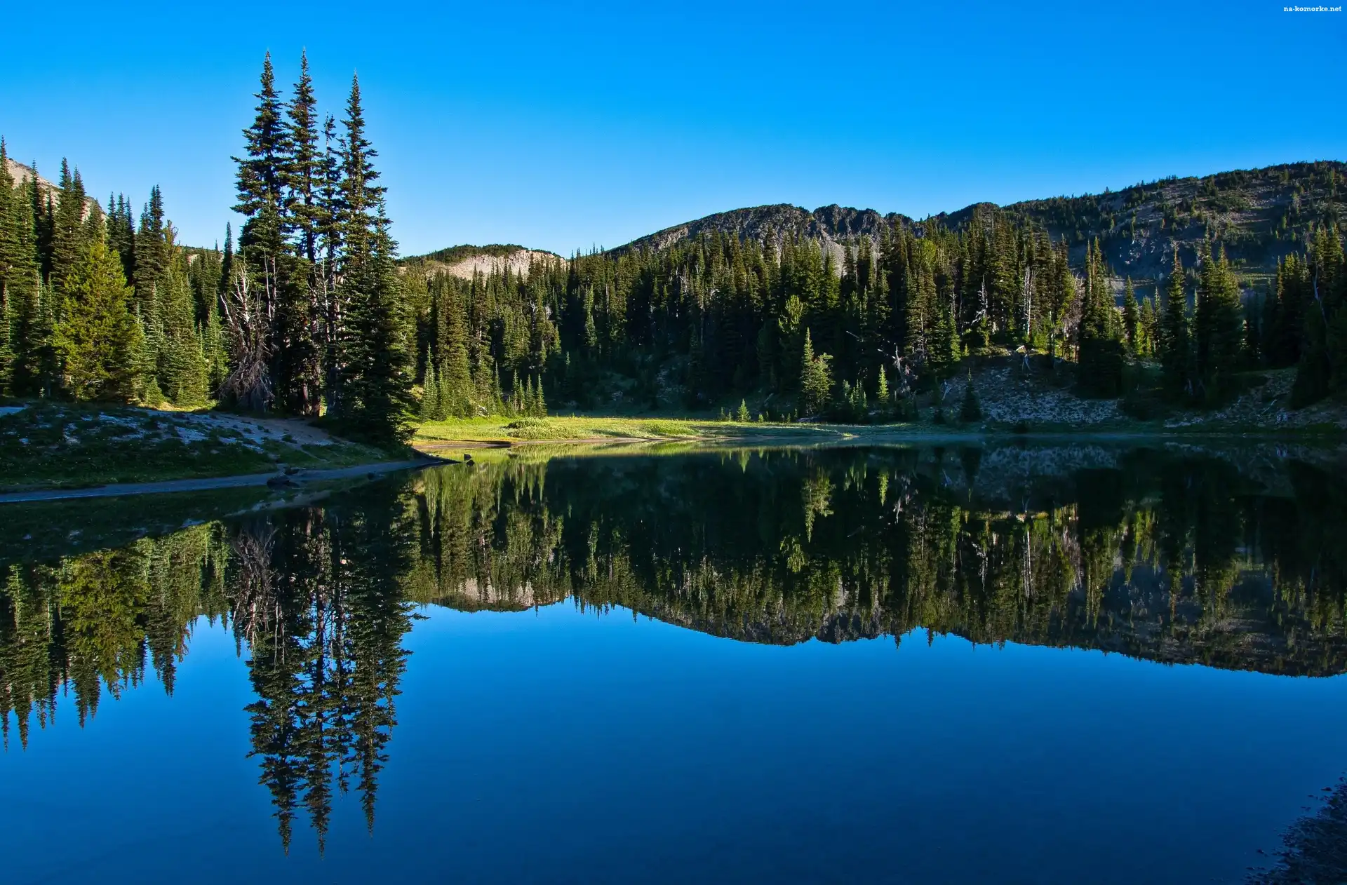 Jezioro, Odbicie, Góry, Drzewa na Komórkę