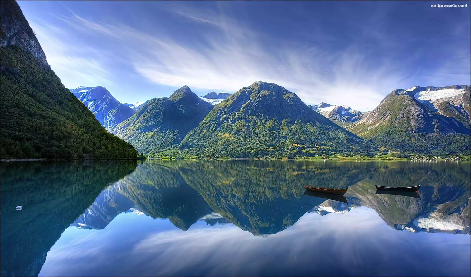 Jezioro, Odbicie, Góry, Łódki na Komórkę
