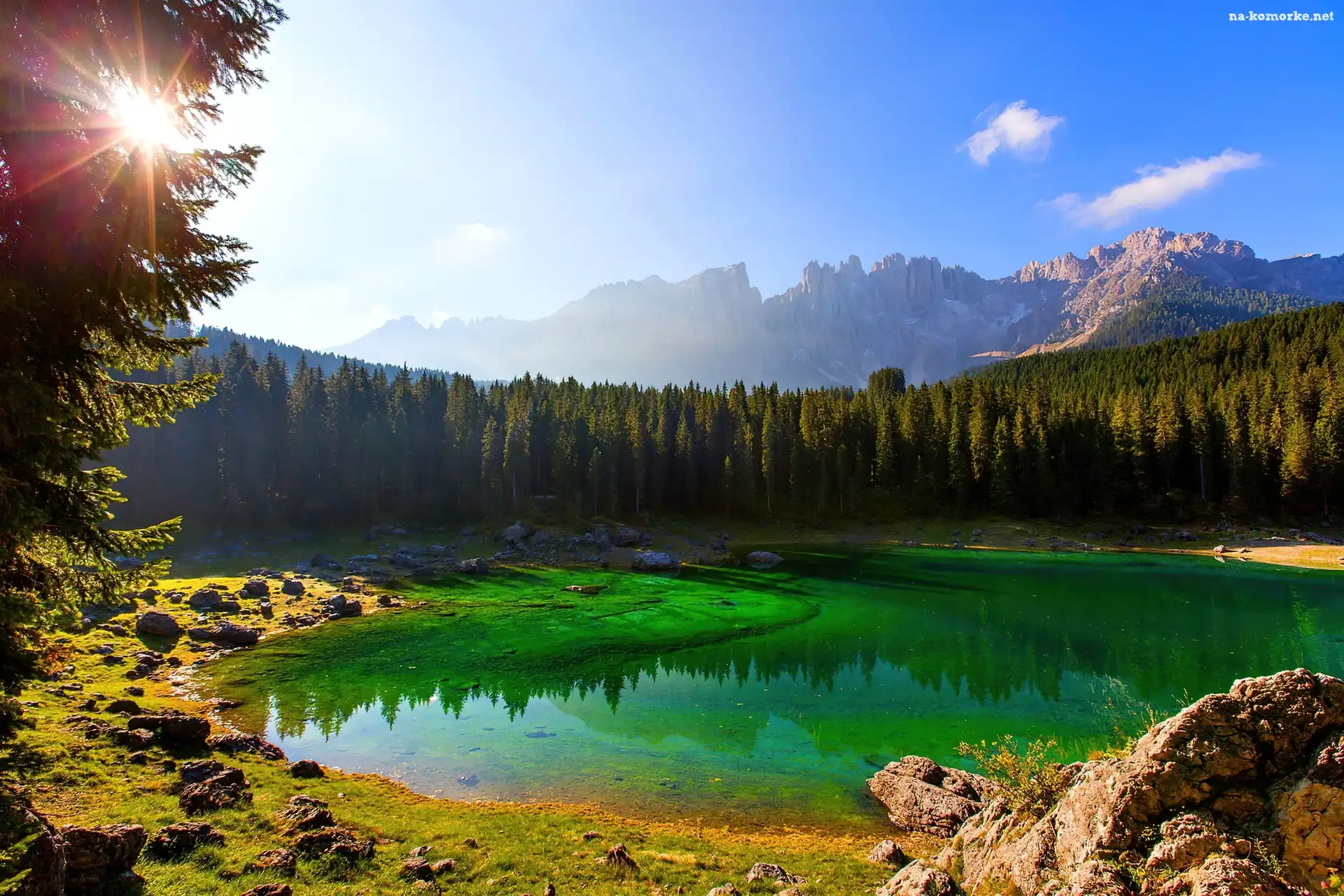 Jezioro, Promienie Słońca, Góry, Lasy na Komórkę