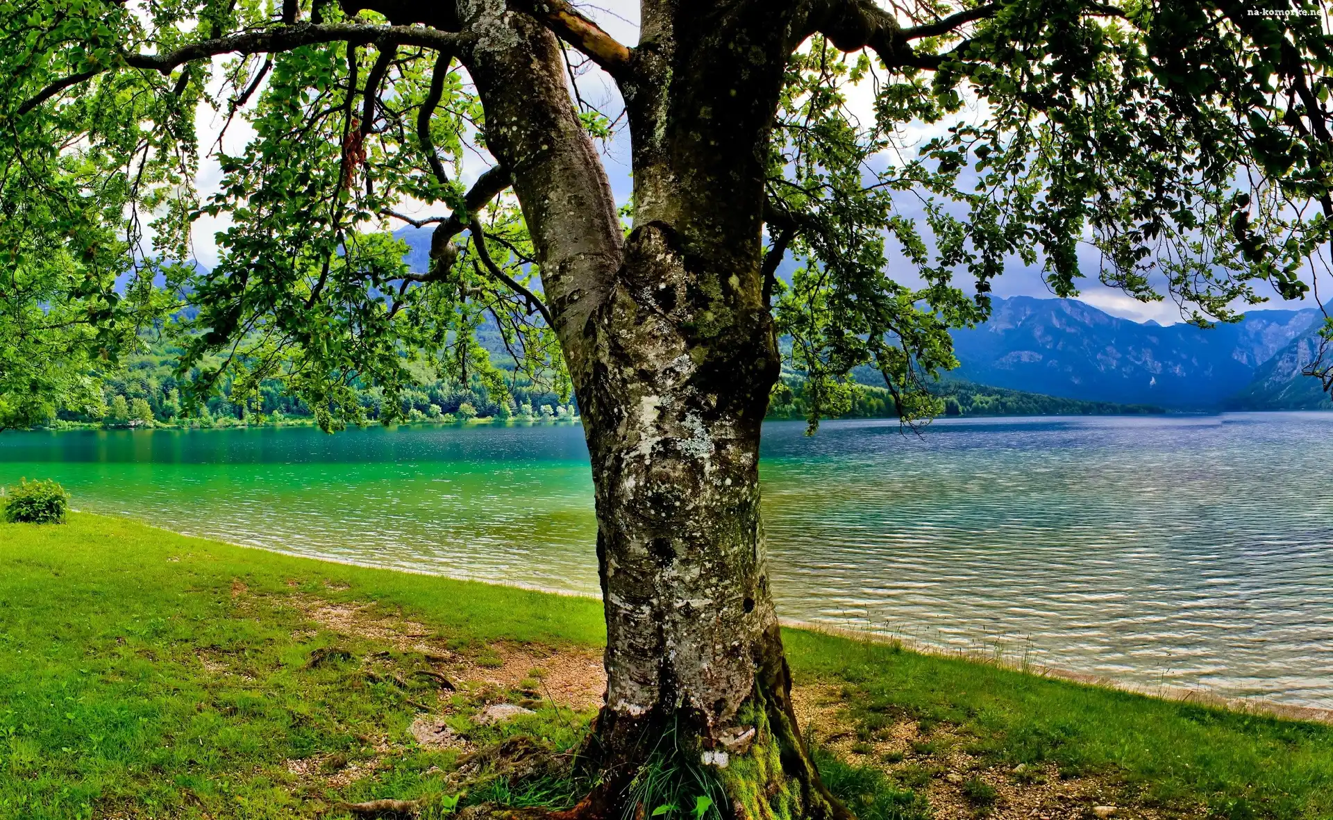 Jezioro, Wiosna, Góry, Drzewo na Komórkę