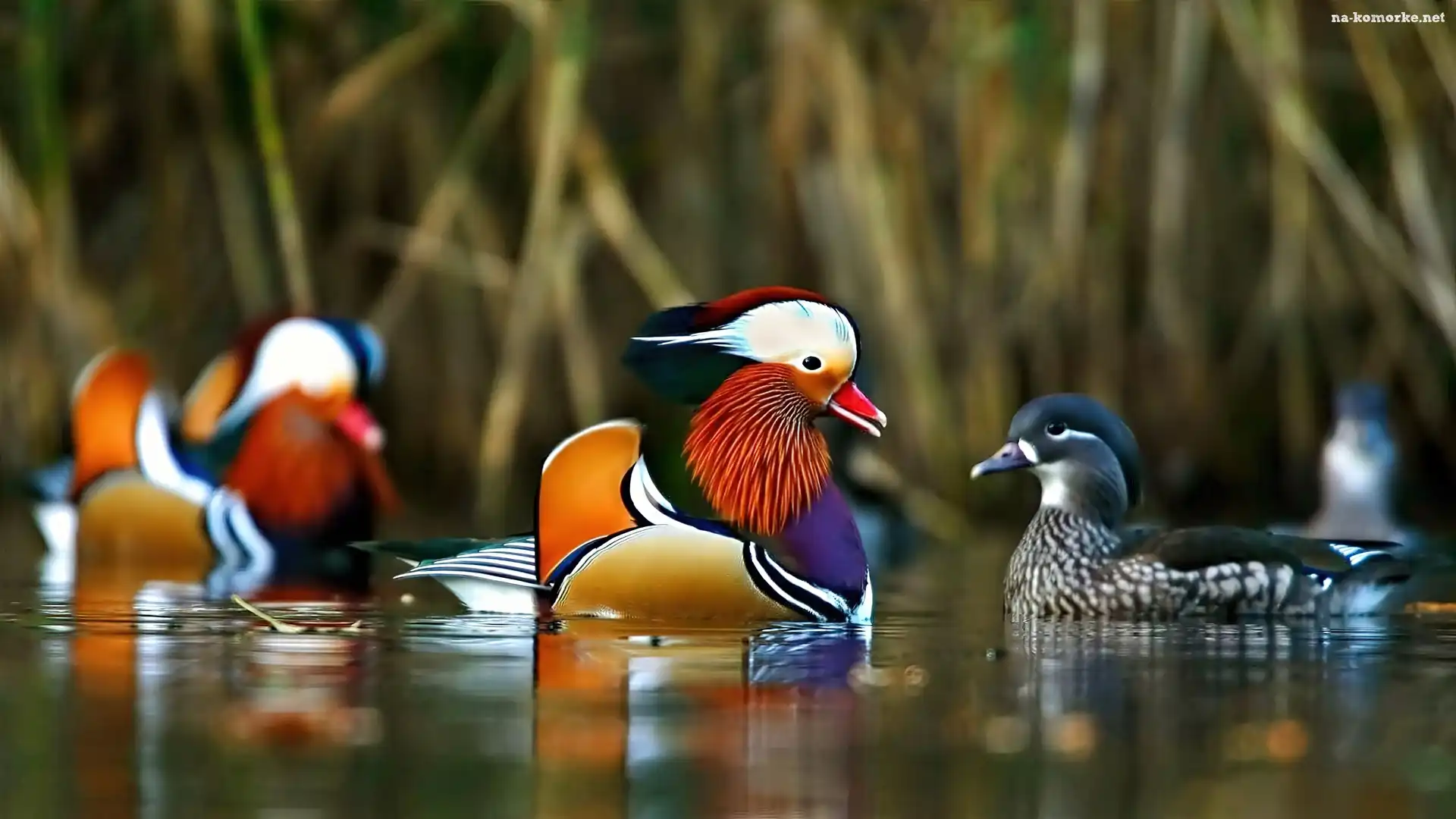 Jezioro, Rozmycie, Kaczki, Mandarynki na Komórkę