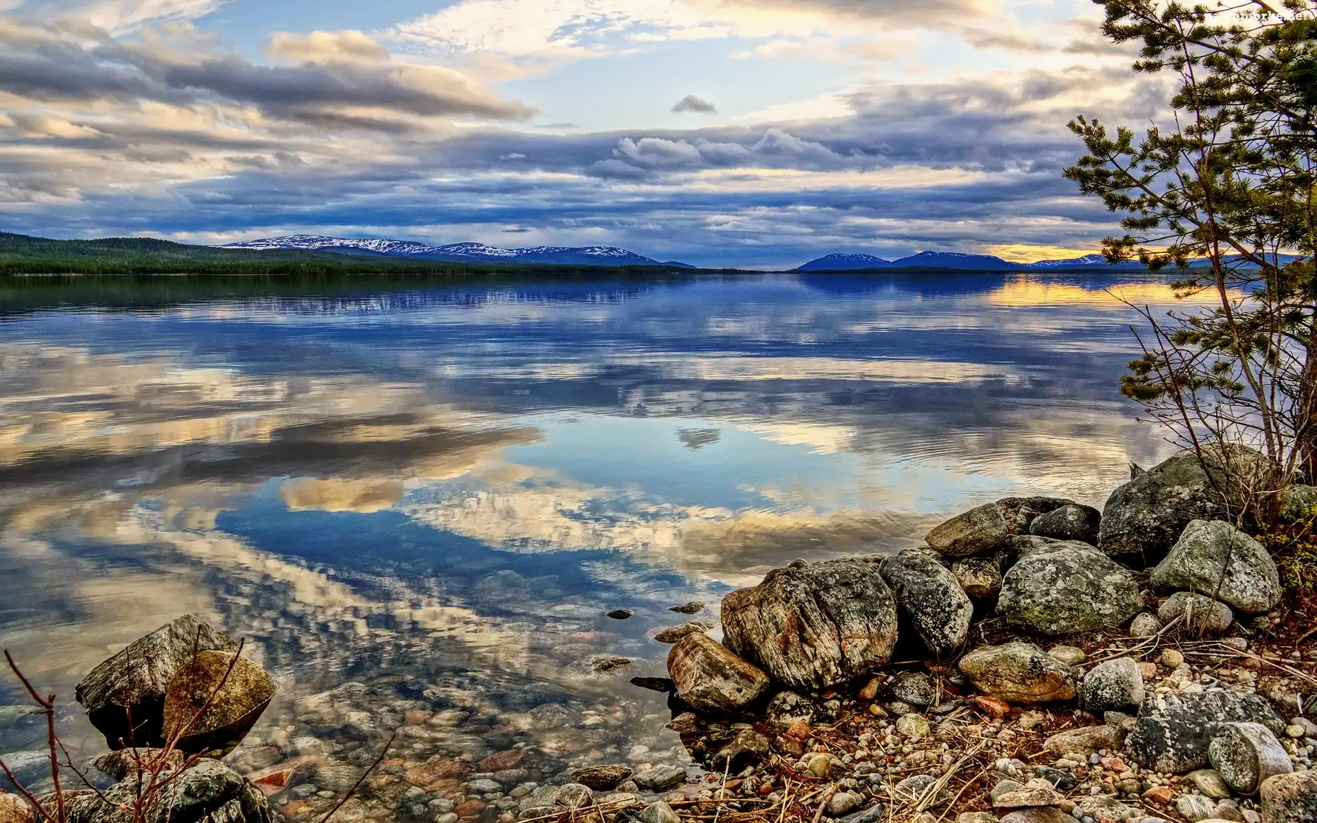 Jezioro, Odbicie, Kamienie, Niebo na Komórkę