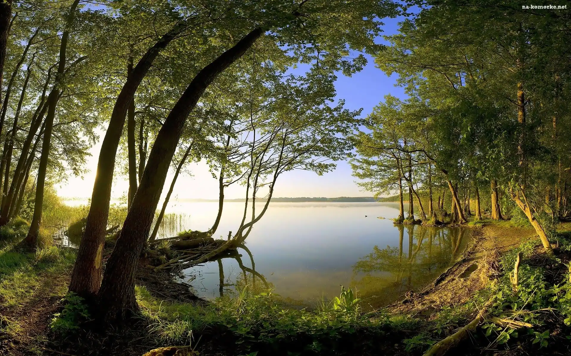 Jezioro, Światło, Las, Przebijające na Komórkę