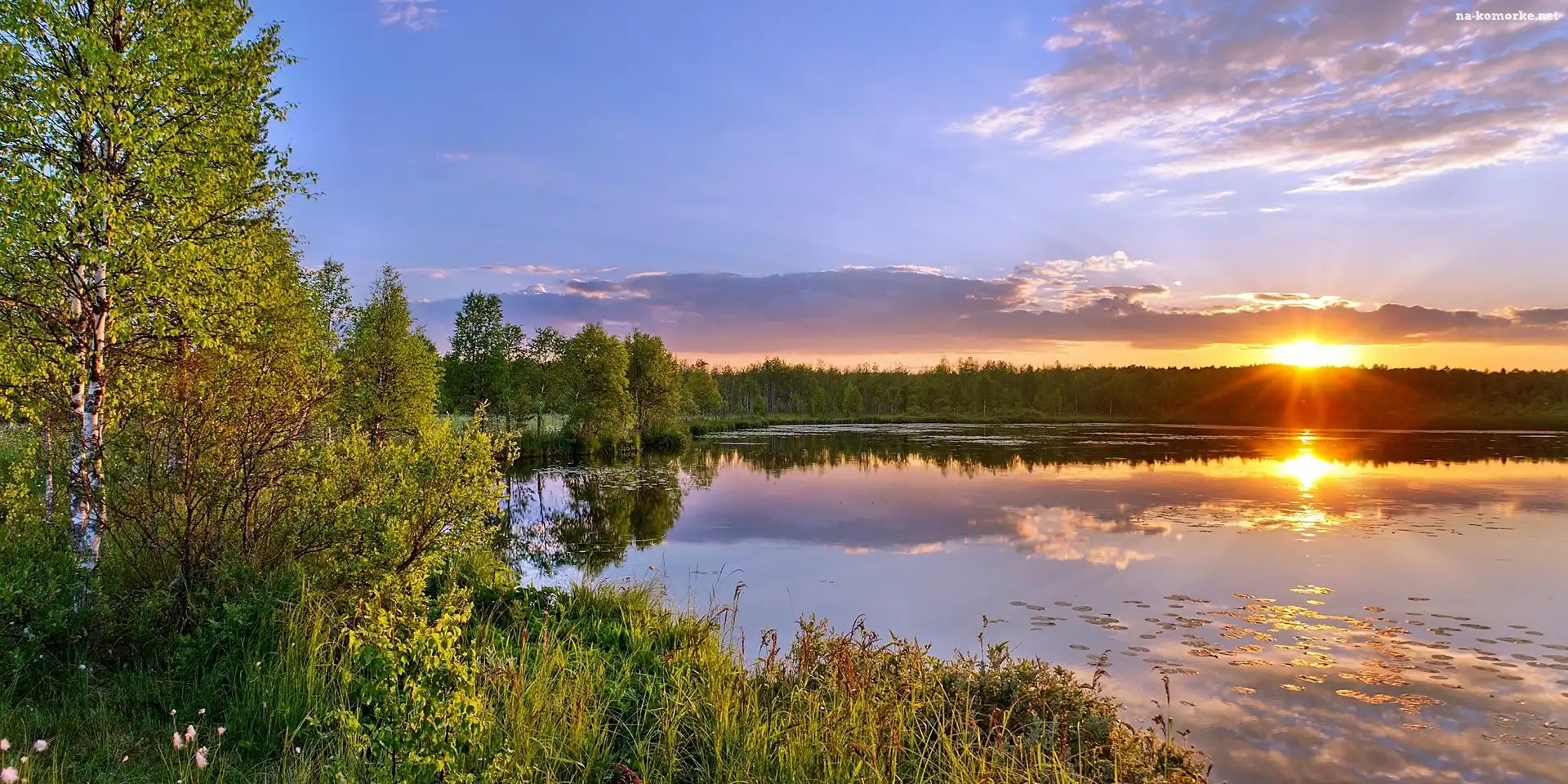 Jezioro, Słońca, Lasy, Zachód na Komórkę