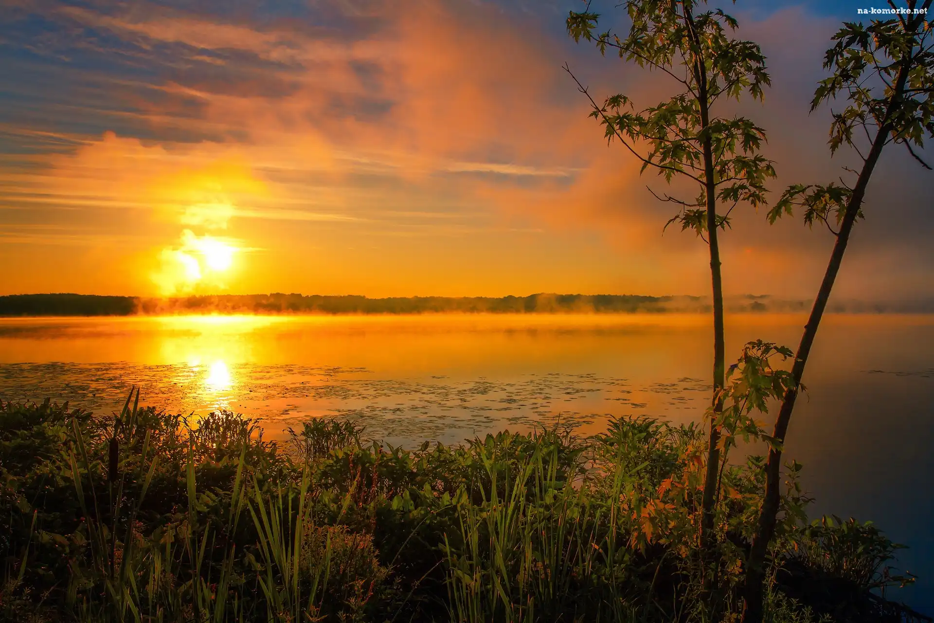 Jezioro, Słońca, Mgła, Promienie na Komórkę