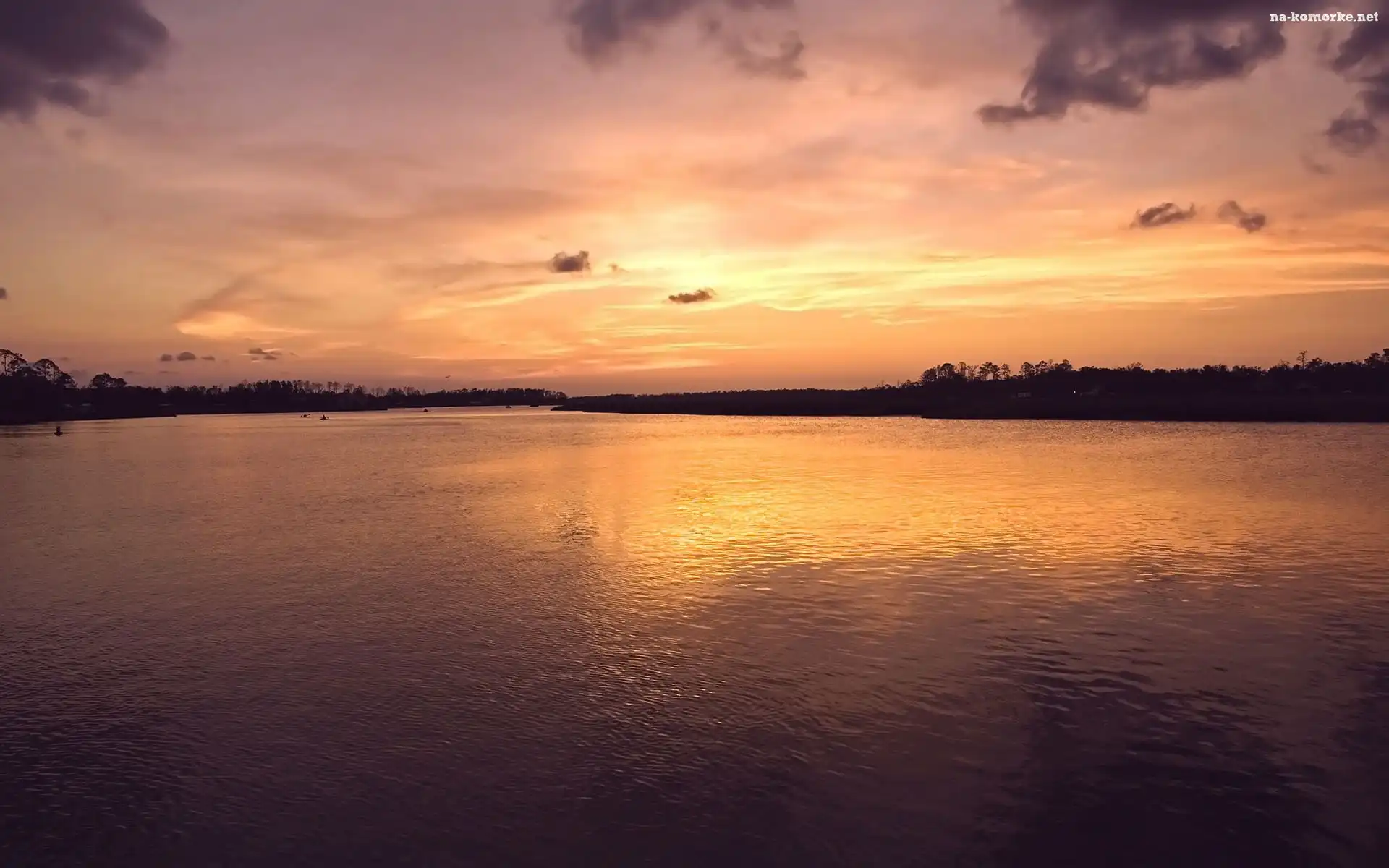 Jezioro, Słońca, Niebo, Zachód na Komórkę