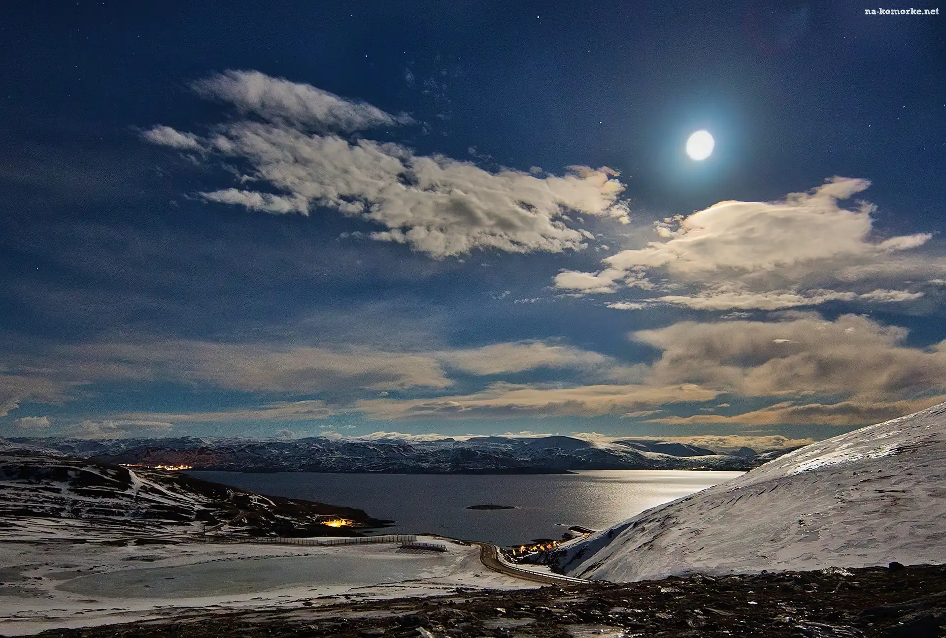 Jezioro, Góry, Noc, Księżyc na Komórkę