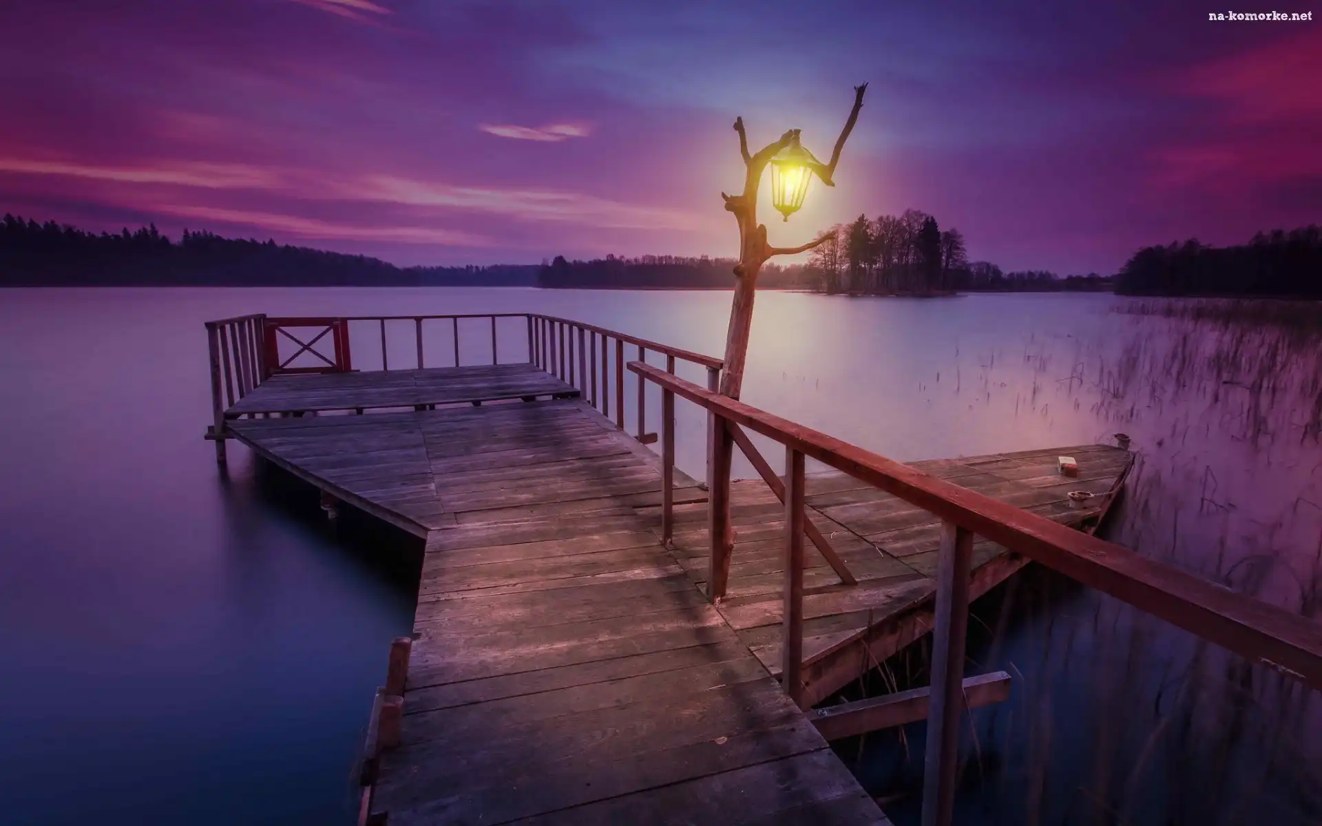 Jezioro, Latarnia, Noc, Pomost na Komórkę