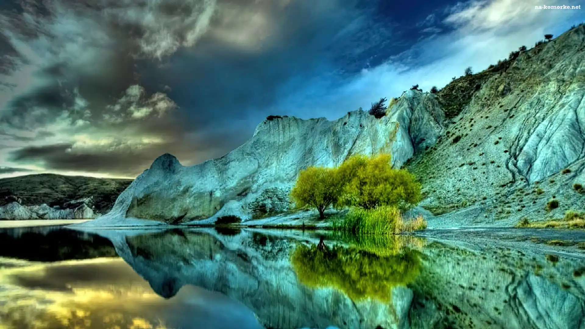 Jezioro, Skały, Odbicie, Lustrzane na Komórkę