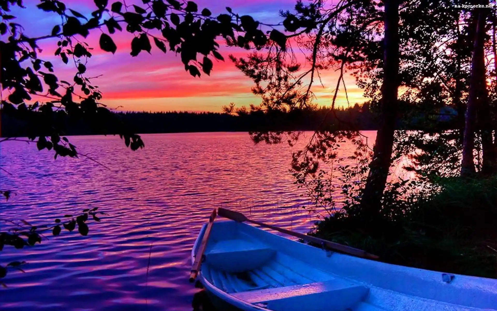 Łódka, Jezioro, Drzewa na Komórkę