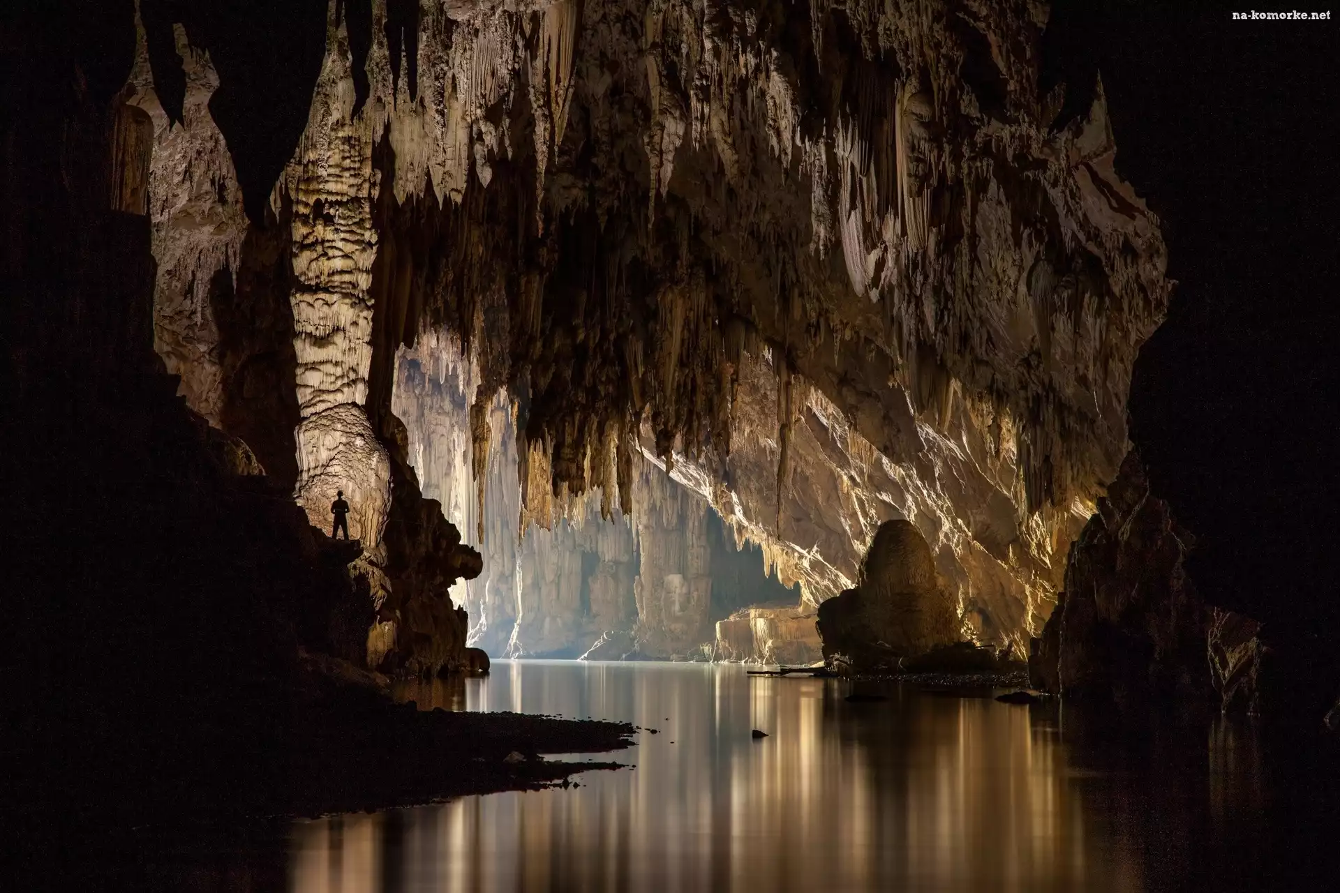 Jezioro, Stalaktyty, Jaskinia, Światło, Podziemne, Człowiek na Komórkę