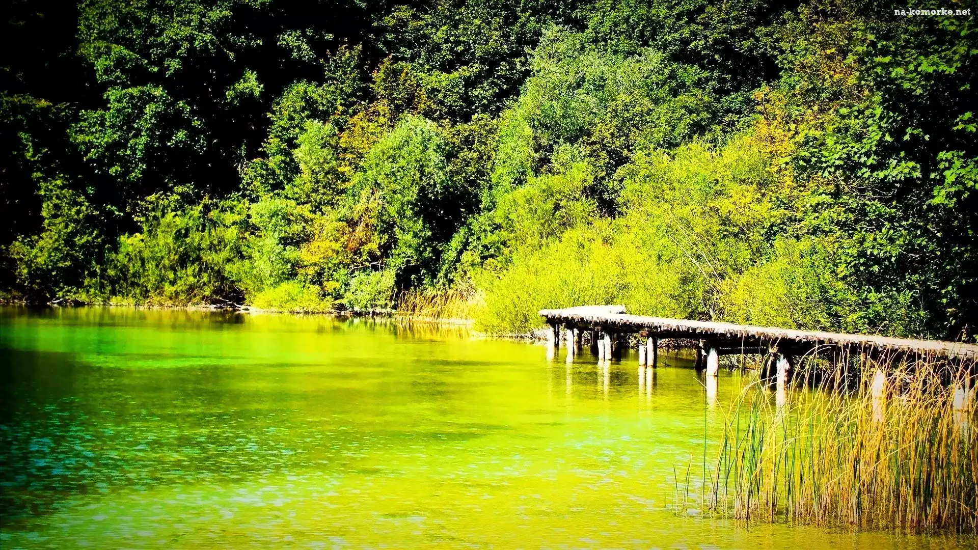 Jezioro, Brzeg, Pomost, Zalesiony na Komórkę