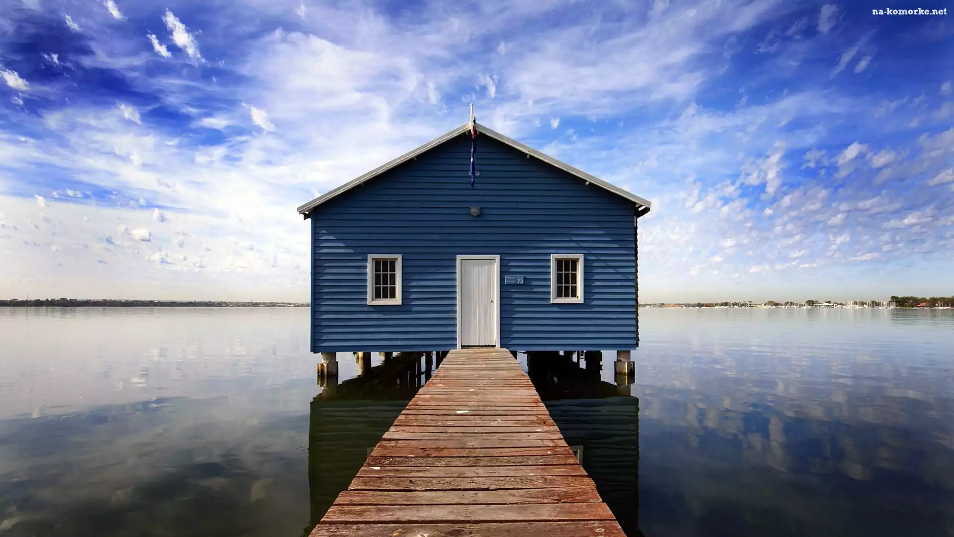 Jezioro, Domek, Pomost, Niebieski na Komórkę