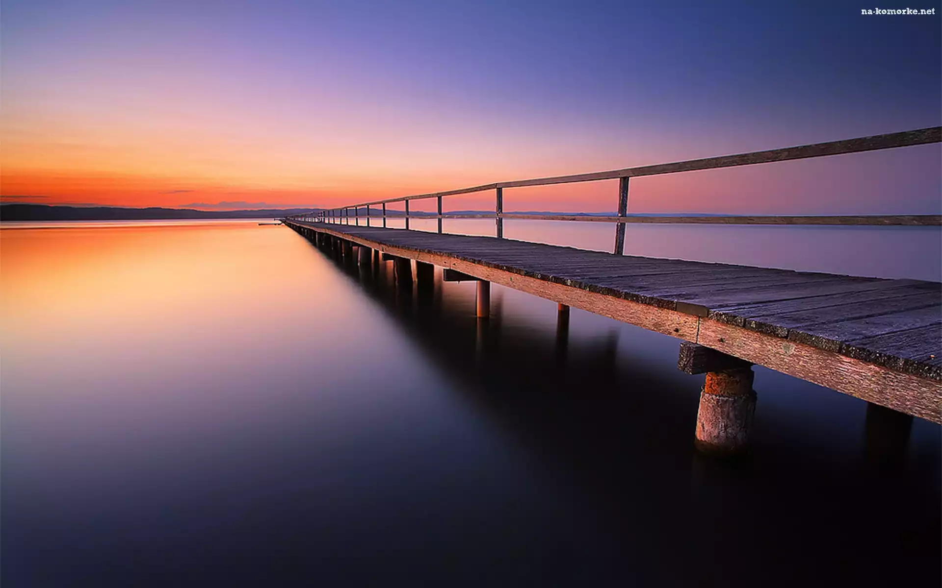 Jezioro, Słońca, Pomost, Zachód na Komórkę