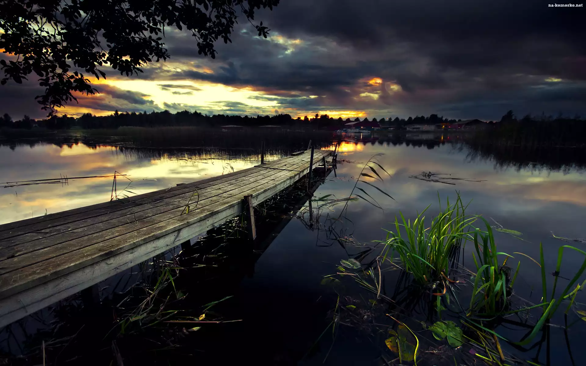 Jezioro, Zmierzch, Rośliny, Pomost na Komórkę