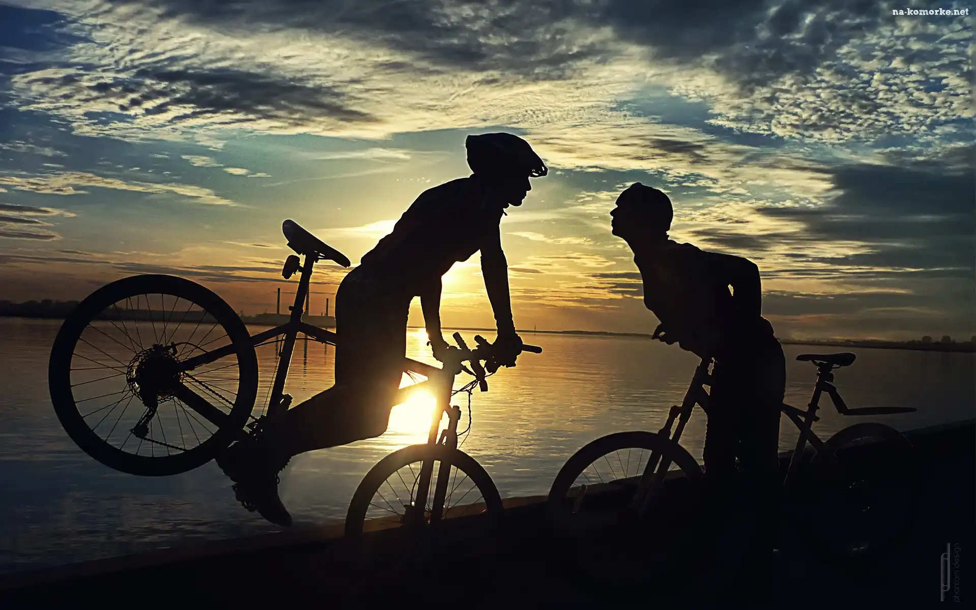 Jezioro, Ludzi, Rowery, Dwoje na Komórkę