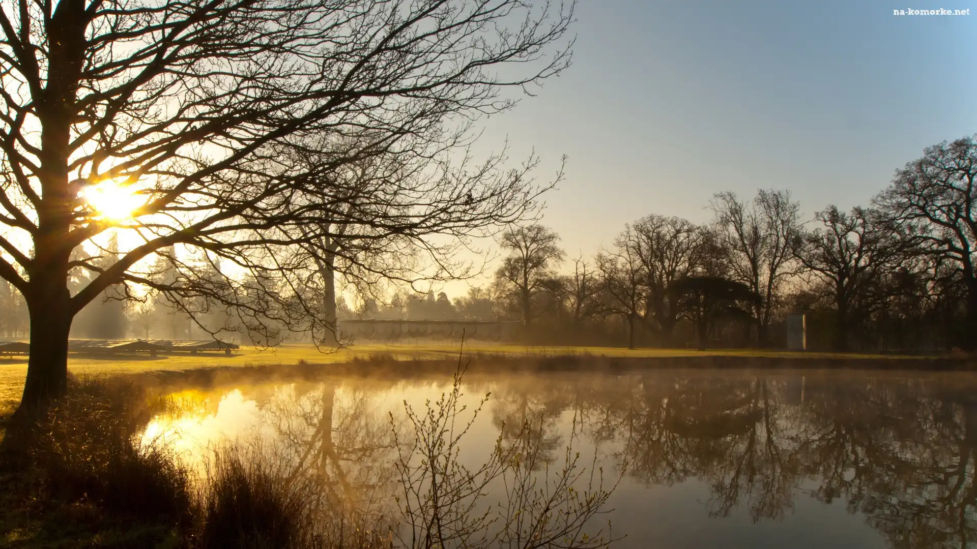 Jezioro, Zachód Słońca, Drzewa na Komórkę