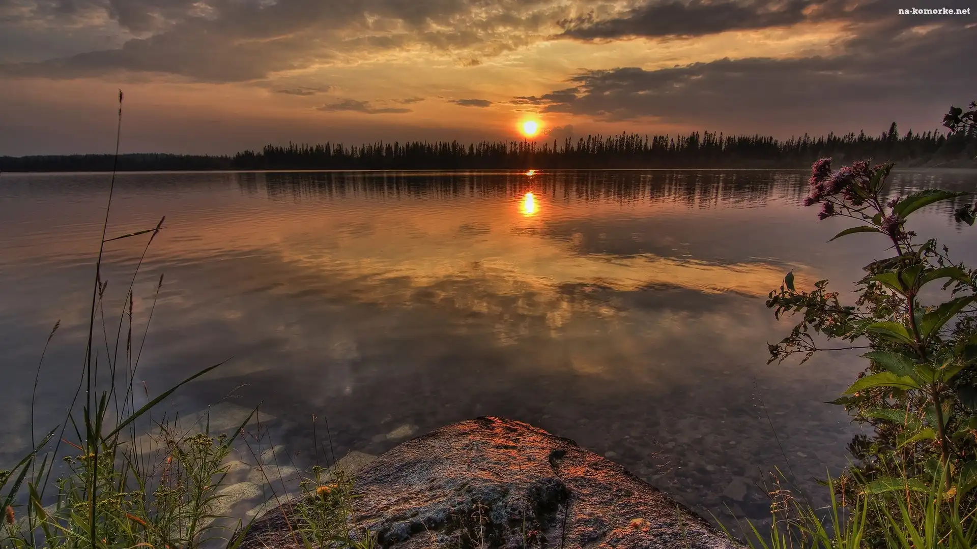 Jezioro, Zachód Słońca, Rośliny na Komórkę