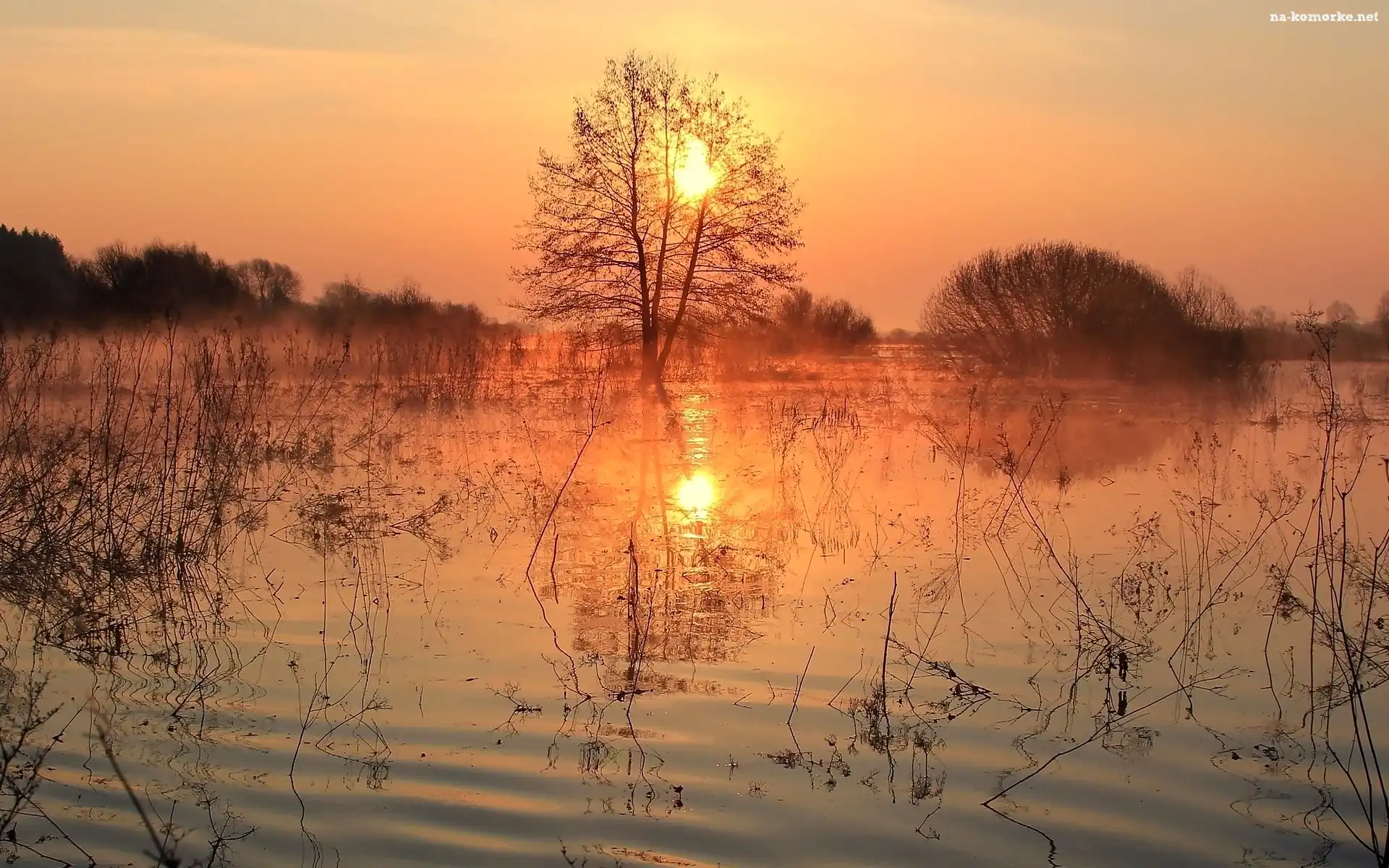 Jezioro, Mgła, Wschód słońca na Komórkę