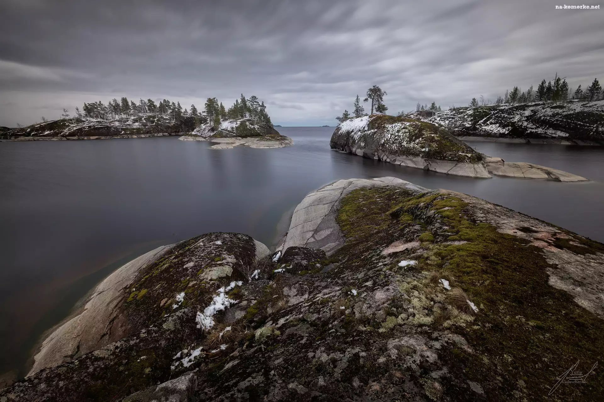 Niebo, Jezioro Ładoga, Rosja, Drzewa, Skały, Skalne, Wysepki na Komórkę